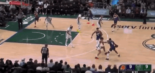 首节8分31秒,杰伦格林直接复制哈登经典,把对手晃倒之后,停留了有2秒才出手! 杰伦格林在弧顶持球横向突破,一个假动作直接将吉昂晃开了2米远,并且整个人摔倒在地,而杰伦格林见状并没有马上出手,而是右手做出了一个摆手的动作,然后才惬意地完成投篮,球应声入网! 不得不说,杰伦格林这一套技术动作观赏性十足,而停球摆手的动作则侮辱性十足! 而这次晃人停顿投篮,与哈登当年晃倒快船的韦斯利约翰逊几乎一模一样!