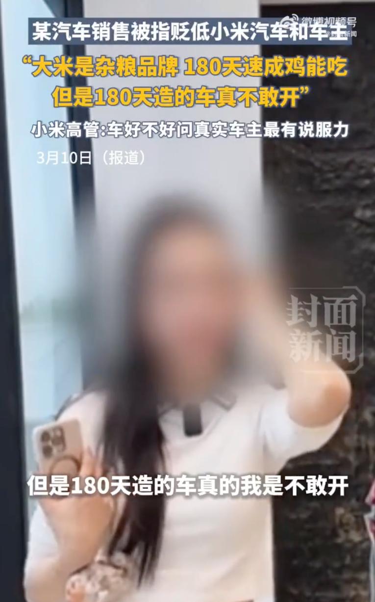 太离谱了!宝马门店销售直播卖车,张嘴就疯狂贬低小米汽车,连车主一起嘲讽,离谱言论一出,直接引爆全网争议。 这事的起因,是上海一家宝马 5S 店的主播,在直播里的一系列迷惑发言。 她先是阴阳怪气地说,还是宝马质量好,比 “大米汽车” 好多了,那个是 “杂粮品牌”,大米我不敢买也不敢开。 更过分的是,她还拿造车时长说事,直言 “180 天的速成鸡能吃,180 天造的车我可不敢开,你要对自己、对家人、对马路上的行人负责”。 不止贬低车,她还连车主一起嘲讽,放话 “宝马 X5 的车主可以随随便便买小米,小米的车主可不能随随便便买宝马 X5”,甚至说在路上看到开这个品牌的车主,都要一脚油门追上去,看看人家长什么样。 这些直播片段被爆出来后,瞬间在网上炸了锅。小米产业投资部合伙人潘九堂,很快就给出了高情商回应。 他先是大方表示,宝马是伟大的车企,自己很多亲朋都是宝马车主;接着说,智者向来开放,愿意持续学习新事物,小米汽车上市后,很多欧洲、日韩的顶尖车企,还有主流豪华品牌的高层,都组团来交流过,不少还表达了合作意向;最后也坦荡表态,欢迎大家多试驾、多对比,车好不好,开一开、问问真实车主,比什么都有说服力。 反观宝马这边,记者联系涉事的 5S 店,工作人员说不清楚这事;致电宝马官方客服,对方只说记录了问题反馈给上级,截至发稿也没有正式回应。 这事也让网友们吵翻了天。 有网友直言:我开宝马,但每次看国产电车的发展,都觉得宝马现在太不思进取了,这也是我不买宝马的原因。 还有人一针见血地说:这就像厂里干了几十年的老员工,没什么拿得出手的新技术,只能拿自己的老资历说事。 也有网友表示,靠贬低对手抬高自己,真的太掉价了,越说越显得自己没底气。 更有意思的是,还有人跳出来洗地,说人家说的是 “大米汽车”,又没提小米,纯属网友对号入座。 这话简直是自欺欺人。汽车圈里,用 “大米”“杂粮” 调侃内涵小米汽车,早就不是什么新鲜套路。她要是真没那个意思,怎么不说大葱、大蒜、白菜,非要揪着带 “米” 字的词不放?更何况,“180 天造车” 这个说法,从小米汽车上市就一直被关联讨论,这话指向谁,简直是司马昭之心路人皆知。 说实话,这事最让人反感的,从来不是品牌之间的竞争,而是这种靠恶意贬低、阴阳怪气博眼球的低级操作。 现在新能源市场竞争激烈是事实,但良性竞争拼的是技术、是产品、是服务,不是靠嘴踩对手。你越疯狂贬低别人,越显得自己对产品没底气。 更何况,消费者心里都有一杆秤,车好不好,试驾一圈、问问真实车主就清楚了,不是靠几句嘲讽就能改变的。一个销售的不当言论,最终消耗的是宝马这个百年品牌的口碑和好感。与其花心思内涵同行,不如沉下心来做好产品,毕竟在新能源时代,光靠吃老本、摆架子,早晚会被用户和市场甩在身后。 对于这事,你怎么看?