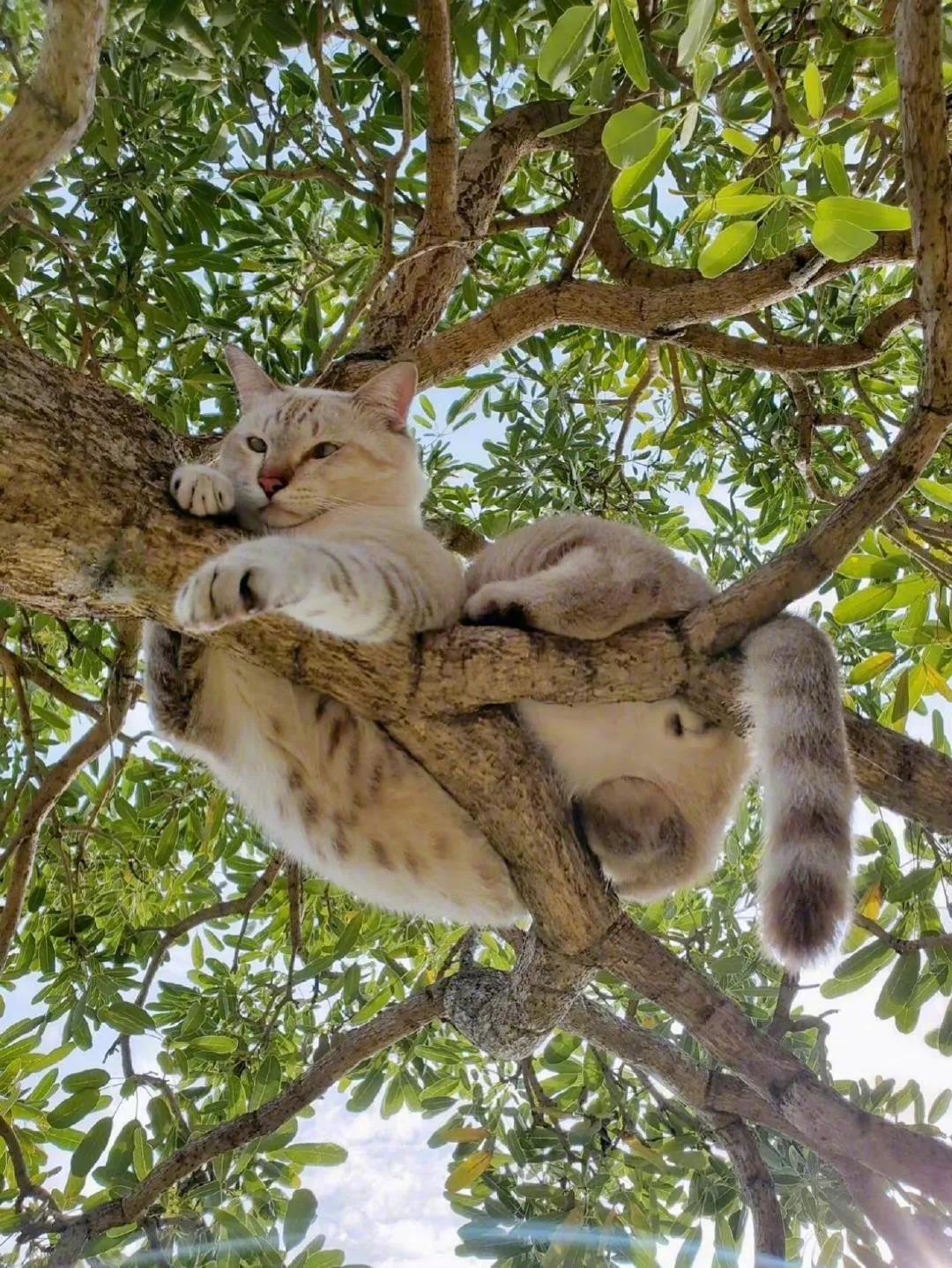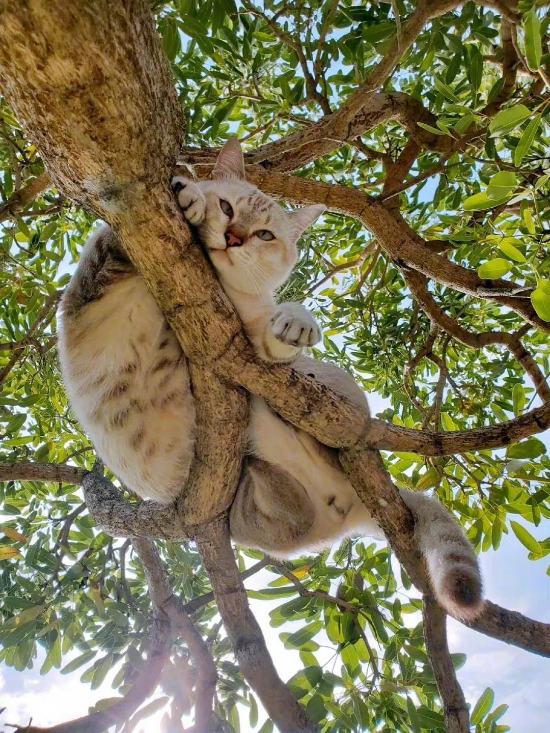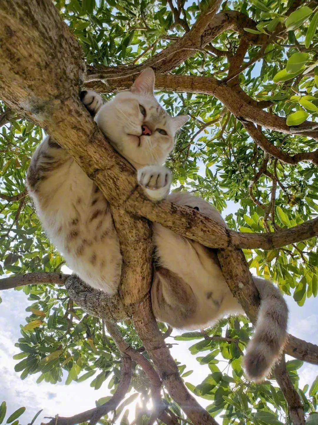 树上发现一只猫!
