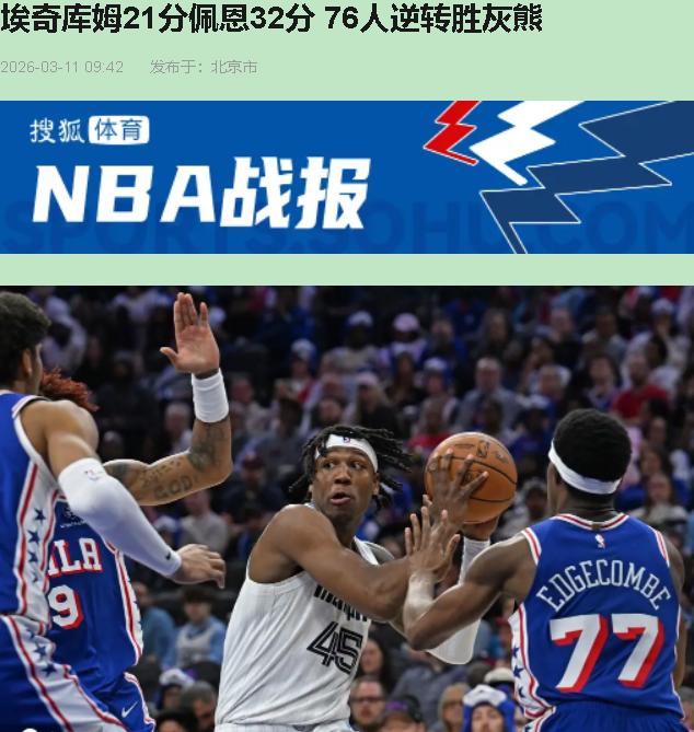 领先14分被翻盘?我反倒松了口气——灰熊终于把该交的学费交明白了。 第三节杰罗姆那几记三分,把富国银行中心射成图书馆。你看着年轻人体能炸裂、火力全开,以为稳了?错。第四节亨德里克斯那记顶人强投打铁的瞬间,我就知道要完。这不是实力问题,是年轻球队的通病:领先不会打,拿球就单干,退防像凌晨扫马路。 佩恩和乌布雷在禁区如入无人之境?别怪他们太猛,看灰熊的防守沟通——炸了锅。埃奇库姆那两次抢断不是他有多神,是灰熊传球意图写在脑门上,手腕一抖就知道往哪飞。考沃德抢了16个篮板确实硬,但护框选位?基本是目送。天赋肉眼可见,脑子还没跟上。 可骂归骂,你看杰罗姆26+8的灵性,看这群愣头青第三节那种不管不顾的狠劲——骨架搭对了,只是缺个老炮在耳边吼:稳住,别浪。 五连败疼吗?疼。相比起温水煮青蛙的虚假繁荣,这种痛快的崩盘才是重建的必修课。年轻人要学的不是怎么赢14分,而是对手反扑时不尿裤子。这笔学费,灰熊交得起,也必须交。埃奇库姆21分佩恩32分 76人逆转胜灰熊