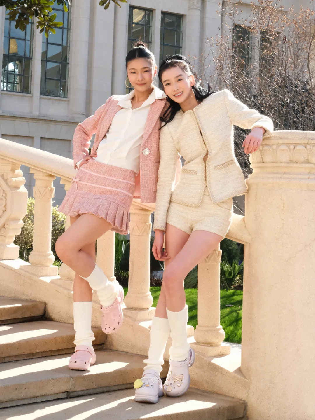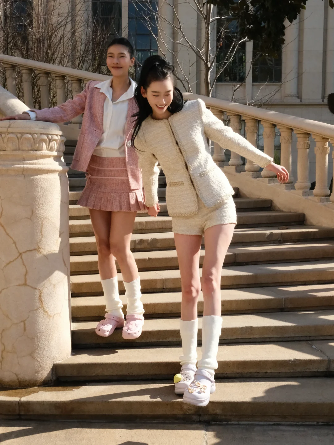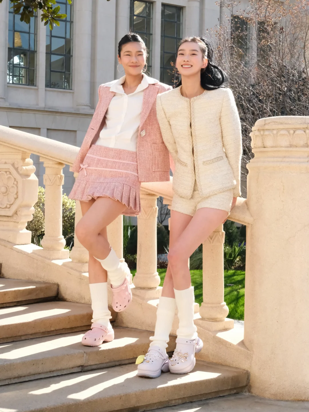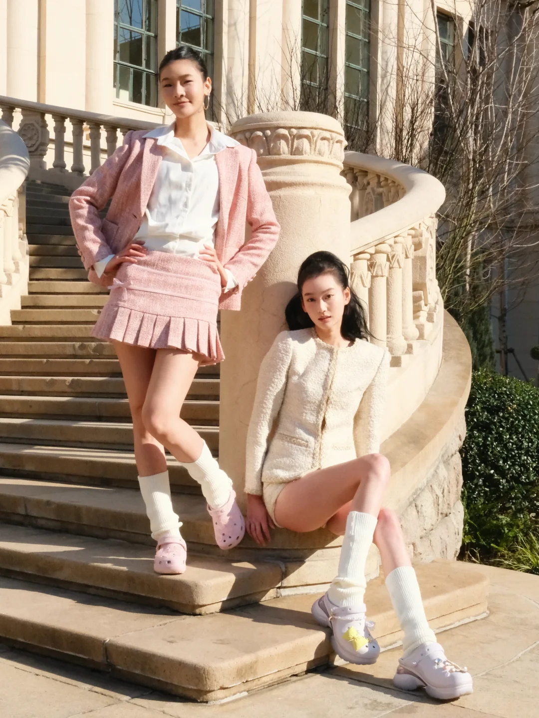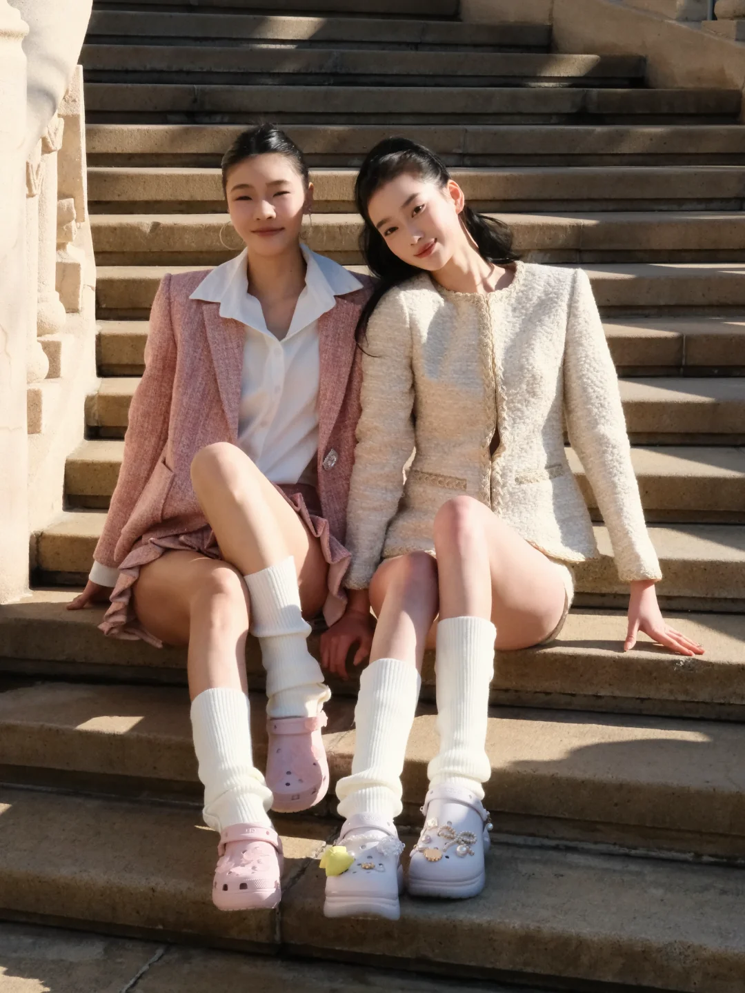 最近天气好舒服 囤了N套春日造型 出门拍照了📷快来跟我们一起get一些春日限定版 - 和姐妹的春日穿搭主打一个粉配紫氛围感 Crocs云朵花簇洞洞鞋和Crocs小海豚复古洞洞鞋成了必不可少的春日穿搭本命鞋 搭配智必星充满可爱少女感 轻松切换多种风格 堆堆袜套+洞洞鞋的组合 又暖又甜 和闺蜜一粉一紫同色系穿搭超吸睛 春日出片率直接拉满! 一双鞋适配所有春日造型 和朋友们一起出门“穿搭”一下