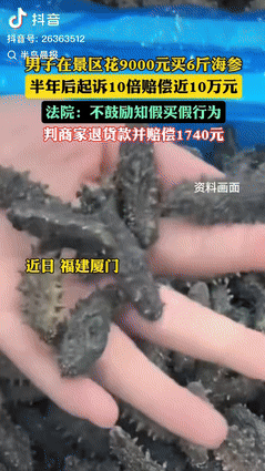 “白嫖失败了?”福建厦门,一男子在景区花9000元买了6斤海参,拿走2斤后,剩余的4斤让老板打包,寄回他老家,不料,半年后,男子拿着检测报告,将海参店老板告上了法庭,声称这是“三无产品”,要求老板10倍赔偿他90000元,可调查后,发现男子身份不简单,法院做出了这样的判决! 福建厦门景区里,一场看似普通的海参买卖,藏着一场精心策划的碰瓷闹剧。 一名男子花 9000 元买了 6 斤海参,只带走 2 斤,剩下的 4 斤让老板寄回老家,本以为能靠着 “三无产品” 的名头,轻松拿到 9 万十倍赔偿,没曾想,法院一查,直接戳穿了他的真面目,最后不仅没拿到一分钱,还得自己承担诉讼费,纯属偷鸡不成蚀把米。 先给大家说最解气的结局:法院最终驳回了男子的全部诉讼请求,所有诉讼费都由他自己承担。 可能有人会问,难道老板真的没做错?其实不然,老板确实有个小疏漏,但男子的所作所为,根本不是维权,就是纯粹的牟利碰瓷。 事情要从半年前说起,厦门某景区的一家海参店,老板在这里做了十几年生意,都是正规渠道进货,进货凭证、供货商资质、每一批海参的检验合格证明,都整理得整整齐齐,平时接待游客也规规矩矩,从来没出过什么岔子。 这天,店里来了个中年男子,看着跟其他游客没两样,进店后就围着海参柜台转,还时不时问老板海参的产地、泡发率,一副很懂行的样子,挑来挑去,最终选中了 6 斤散装干海参,算下来刚好 9000 元。 他没讨价还价,当场就付了钱,全程都很爽快,任谁看都是真心想买海参的游客。 付款后,男子提出了一个看似合理的要求:“我还要在厦门玩几天,带着 6 斤海参太不方便,怕放坏,我先拿走 2 斤,剩下的 4 斤你帮我打包寄回老家吧。” 老板常年接待游客,这种委托邮寄的要求很常见,没多想就答应了。 打包的时候,男子看得特别紧,全程站在旁边盯着,生怕店员做手脚,甚至还让老板拍了打包视频,说怕快递运输的时候损坏。 打包好之后,他亲自填写快递面单,核对了老家的地址和电话,确认无误后才签字,快递揽收的时候,也有完整的记录,一切都显得毫无异常。 老板以为这笔生意就这么结束了,转身就忘了这回事,继续安安稳稳做自己的生意。 可谁能想到,半年之后,一份法院的传票突然送到了店里,老板拆开一看,瞬间懵了 —— 自己被半年前买海参的那个男子告了。 男子的起诉理由很简单:他收到的 4 斤海参是 “三无产品”,没有标注生产日期、保质期和生产厂家,要求老板退还 9000 元货款,再支付十倍赔偿金 90000 元。 庭审的时候,男子只提交了两份证据:付款记录和一份检测报告,除此之外,再也拿不出其他有力的证据。 法官追问他,检测的海参样品是不是当初老板寄给他的那一批,他支支吾吾地说,是从收到的 4 斤海参里取的;可当法官问他,剩下的海参在哪里,能不能拿来核对时,他又说,拆封后没保存好,早就扔了。 更说不通的是,为什么收到货当场不检查、不检测,非要等半年才想起这件事,他始终说不出一个合理的理由。 反观老板,提交的证据十分齐全:店内全程监控,清晰拍到男子主动挑选海参、付款、盯着打包、填写快递面单的全过程; 而法院的深入调查,更是彻底揭开了男子的伪装。 调取他的涉诉记录后发现,这男的根本不是普通游客,而是个专门靠碰瓷商家牟利的职业打假人。 短短三年时间里,他在福建、广东、浙江等多个省份,一共发起了 27 起类似的诉讼,每一起的套路都一模一样。 他的固定套路就是:专挑景区特产店、街边散装食品店下手,买几千到几万块的东西,一部分自己带走,一部分让商家邮寄,然后等三到六个月,拿着检测报告起诉,要求十倍赔偿。 之前有 11 起案件,商家怕麻烦、怕影响生意,私下给了他钱,他就撤诉了,剩下的要么证据不足被驳回,要么他自己撤诉。 无独有偶,浙江杭州也发生过一起一模一样的案子。 一名男子在景区特产店花 5000 元买了散装笋干,当场带走 1 斤,剩下的让老板邮寄,三个月后就拿着检测报告起诉,要求十倍赔偿 5 万元。 法院查明,这个人两年内有 19 起类似诉讼,牟利目的特别明显,最后只支持了合理消费部分的赔偿,驳回了他的高额诉求。 最终,法院做出判决:驳回男子的全部诉讼请求,本案的诉讼费由男子自行承担。 这个结果,让老板松了一口气,也让周围的商家拍手叫好,终于有人能治治这种恶意碰瓷的人了。 从头到尾,这件事就没有什么复杂的地方,就是一个职业打假人,想钻商家的小疏漏,靠碰瓷赚不义之财,最后栽了跟头。 男子蹲了半年,费了不少心思,花了检测费,不仅没拿到 9 万赔偿,还得自己承担诉讼费,纯属自找的。 如果各位看官老爷们已经选择阅读了此文,麻烦您点一下关注,既方便您进行讨论和分享,又能带来不一样的参与感,感谢各位看官老爷们的支持!