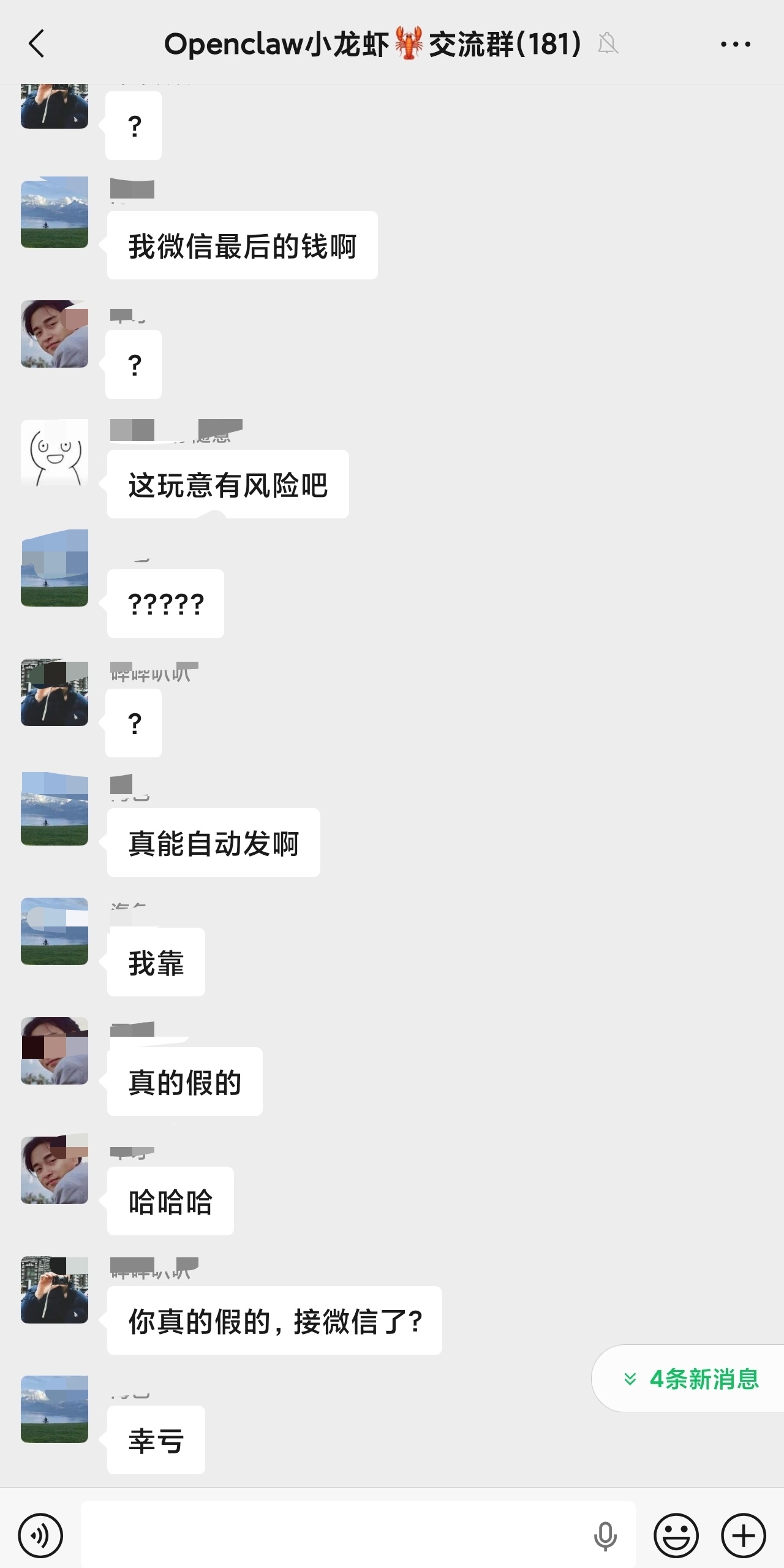 还真能发红包呀?微信群有人说龙虾自动发红包,打开一看发了0.14元,还说是自己微