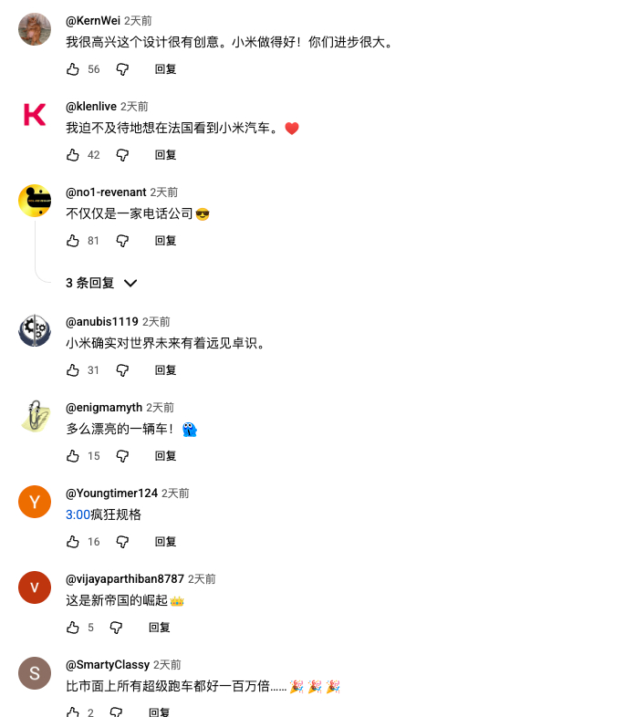 新能源给中国汽车工业拉到了起跑线上,脱离了国外对于发动机的束缚。小米造车以来,就说要培养中国的汽车文化,一直以来,不仅是培养了汽车文化,还给中国汽车工业通过纽北,通过耐力赛推到了世界的舞台上。