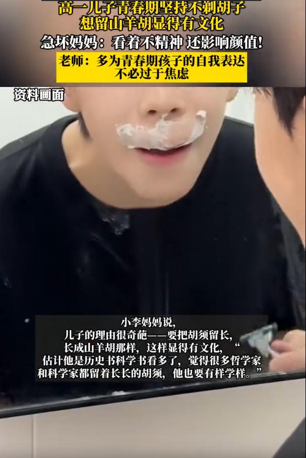 “愁坏了!”浙江杭州,一名高一男生为了显得自己有文化,坚持想要留山羊胡,可这却愁坏了父母,两人劝不动,就只能找老师帮忙,老师表示这还是头一次督促剃胡子。网友:找个女生说他丑就解决了 男生家长介绍,孩子现在正好是青春期,也不知道他怎么想的,突然就开始留胡子,好说歹说,嘴皮子都快磨破了,他就是不为所动。理由还挺清奇,说留山羊胡显得自己有文化 这可真是青春期撞上了更年期,两边根本说不到一块去。父母一看自己搞不定,赶紧搬救兵,找到了孩子的班主任。希望老师能出马,从影响颜值、不够精神这些角度劝劝孩子,把胡子剃了 班主任也挺有意思,说自己干了这么多年老师,监督过学生剪指甲,督促过学生剪头发,但催着学生剃胡子,这还真是头一回 这事看着是个留胡子的小事,其实挺有意思的。一个十几岁的孩子,想通过留胡子让自己看起来成熟、有文化,这不就是我们每个人年轻时都干过的事吗?想证明自己长大了,想跟别人不一样,想用某种外在的东西标榜自己的内在。这种心情,完全可以理解 但话说回来,留胡子这件事,还真不是想留就能留好的 你得看年龄,也得看长相。一个十六七岁的少年,脸上还带着婴儿肥,胡子稀稀拉拉就那么几根,说是山羊胡,其实更像是没刮干净的绒毛。这个年纪,满脸的胶原蛋白,干干净净的才是最清爽最好看的,硬要留胡子,反而显得老气横秋,甚至有点邋遢 我们常说不听老人言,吃亏在眼前,但青春期的孩子最不愿意听的,恰恰就是老人的话。父母越不让干的事,他越要干,因为这能让他感觉到自己有了掌控权。所以这事,光靠堵和压,效果往往适得其反。 其实,家长和老师不妨换个思路。与其纠结于剃不剃胡子,不如去理解他为什么想留胡子 想显得有文化,那什么才是真正的有文化?是读了多少书,是言行举止的得体,是待人接物的分寸,这跟嘴上有没有几根毛,真没什么关系。让他明白,真正的成熟,不在于外表模仿大人,而在于内心开始有担当
