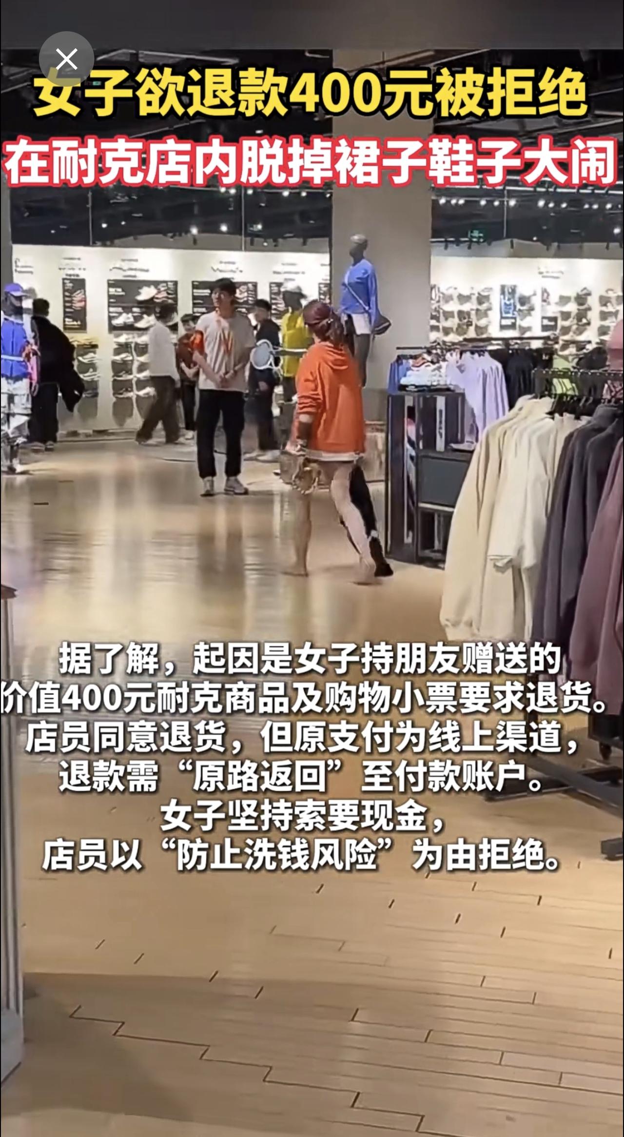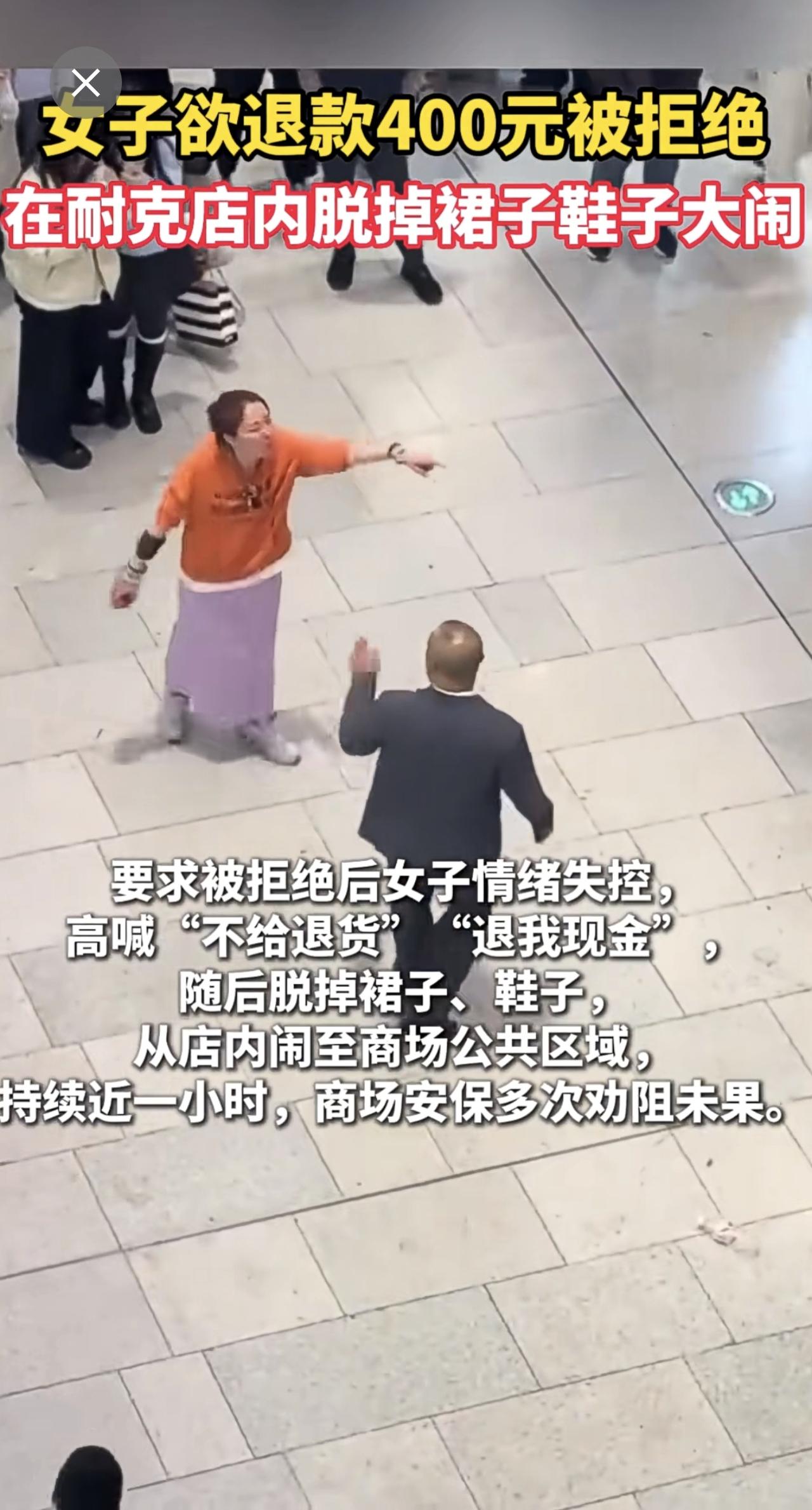 女子欲退款400元被拒绝,于是脱掉裙子鞋子大闹耐克店[捂脸]