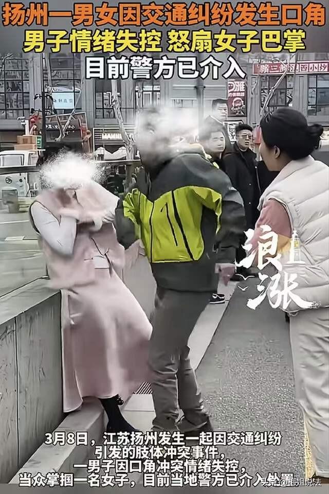 江苏扬州,女司机强行超车剐蹭到他人,反而埋怨被剐蹭车辆不上道,还辱骂司机,司机不和她一般见识,提出把车挪一挪,不要堵路,结果女子撒泼打滚变本加厉,男司机忍无可忍,结结实实给了女司机一耳光。 当时是上下班高峰期,路上车辆众多,行驶虽然缓慢但也算井井有条。 本来所有车辆都按序行驶,可是这时候一女子开车强行超车,与后面男子驾驶的车辆发生了剐蹭。剐蹭并不严重,是一件寻常的交通意外。 男子起初也没想着如何,本来在道路上正常行驶,遇到女子驾车强行超车造成剐蹭,这种情况经常开车的人都清楚,属于女子全责。 男子下车查看车辆状况时,女子也下了车。 区别于男子的冷静不同,女子下车并未查看汽车状态,而是对着男子抱怨起来。 女子一味地责问男子为什么不让她变道超车,一味指责男子并且要求男子承担事故责任。 驾车男子查看车辆状况后,果然如自己预想的一样,小剐蹭属于小事故,感觉处理起来并不麻烦。 但是女子的言语引起了男子的不愉快,这么简单的交通纠纷,怎么还能怪到自己身上呢? 男子担心女子开车少,对于交通规则不清晰,反而耐心的给女子讲解了交通规则,并指出了这个事情责任是女子的,男子正常行驶没有任何责任。 男子的耐心解说,并没有被女子听进去,在女子听到男子说是女子驾车超车引起事故,要负全责时候,该女子的情绪瞬间失控起来。对着男子大声辱骂,一连几分钟,突然地举动把男子都骂蒙了。 这时候,随着事故的发生,两人车辆阻挡了道路的正常行驶,本就拥堵的道路上车辆行驶更加不方便。 男子本着事情不大的想法,觉得只要女子承认责任,双方拍照就可以把车暂时挪到道路边缘,等待处理人员到来,这样可以方便其他车辆正常行驶。 一般来说这种小的剐蹭,拍照取证后,处理人员是可以按流程正常处理的。 没想到这时候女子的情绪更加激动起来,坚决不承认自己的问题,也不同意自己承担事故全责,更加拒绝移动车辆,坚持等到民警到来处理。 男子也没有办法,只能继续等待民警来处理,这期间依旧在女子辱骂中,跟女子耐心沟通。 男子的好意没有换来女子的理解,反而是越发放肆起来。就连周围围观的群众,弄清事情原委后,都在劝说女子。 女子觉得男子以及围观众人都在说她的错,她要承担全责,更加情绪激动,一连几分钟都在不断地辱骂男子,根本没办法正常沟通。 等到民警到来时候,男子总以为事情可以正常解决了。没想到,该女子连民警的处理结果都不认同,并且从始至终没有停止对男子的辱骂行为。 民警的到来也没能解决这个纠纷,男子的耐心随着时间的变长,在女子骂声中彻底消磨殆尽。 男子情绪瞬间失控,毫无征兆的扇了女子一巴掌。 这一巴掌出乎所有人的意料,女子反应过来后大声呼喊,同时试图用牙咬男子来反击。 女子的力量自然是没办法与男子匹敌,随即女子哭着向旁边民警跑去,状告男子的行为。 自始至终,除了男子最后的情绪失控掌掴女子外,该男子一直试图用道理说服女子,而女子却子一开始就在辱骂指责男子。 撇开这个交通纠纷不谈,男子掌掴女子的行为绝对是不理智的,虽然女子的无理行为的确让人愤懑,但是动手打人是违法行为,女子的无理取闹并不能成为男子动手掌掴女子的合理的原因。 《治安管理处罚法》第43条规定,殴打他人/故意伤害身体,只要动手就违法,不管有没有明显伤。 如果女子受伤较重,伤情及以上,男子就涉嫌违反了《刑法》,需要承担刑事责任了。 现实中,因为争吵愤怒掌掴他人,是很容易造成耳膜损伤的,如果六周愈合不了,就构成了轻伤。 即使没有达到轻伤程度,伤害他人也是违法行为,根据《治安管理处罚法》,一般是5-10日拘留,额外还有罚款。同时还要承担对方的医疗费、误工费精神损害抚慰金等以及留下违法/犯罪的记录,真的是非常严重。 最后,无论遇到什么样的事情,首先让自己冷静下来,不要冲动,更不要不顾后果的去做一些行为带动事情升级。