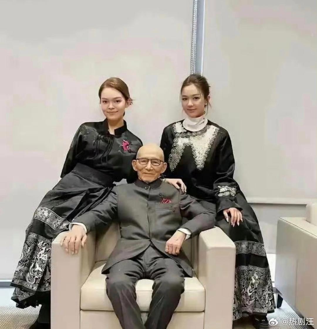 游本昌和他的两个孙女合影。