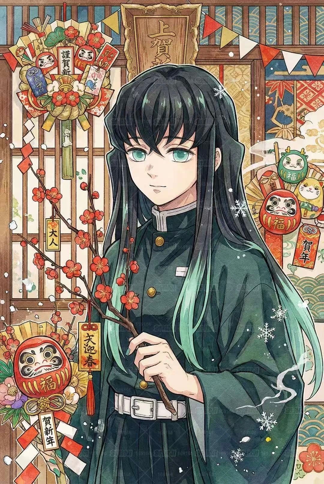 动漫新年迎喜番次元新星计划一组画风细腻的水彩风格鬼灭之刃壁纸