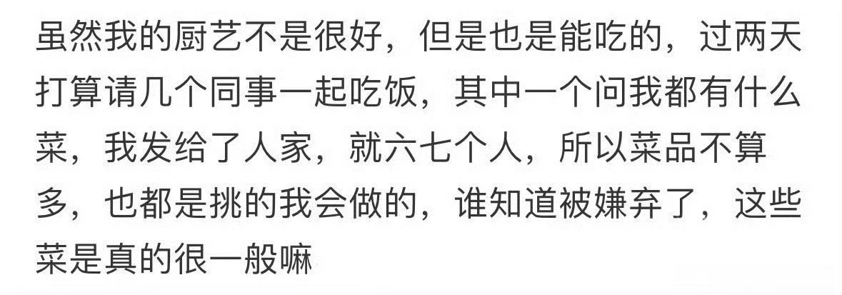 请客吃饭,同事说看不上做的菜