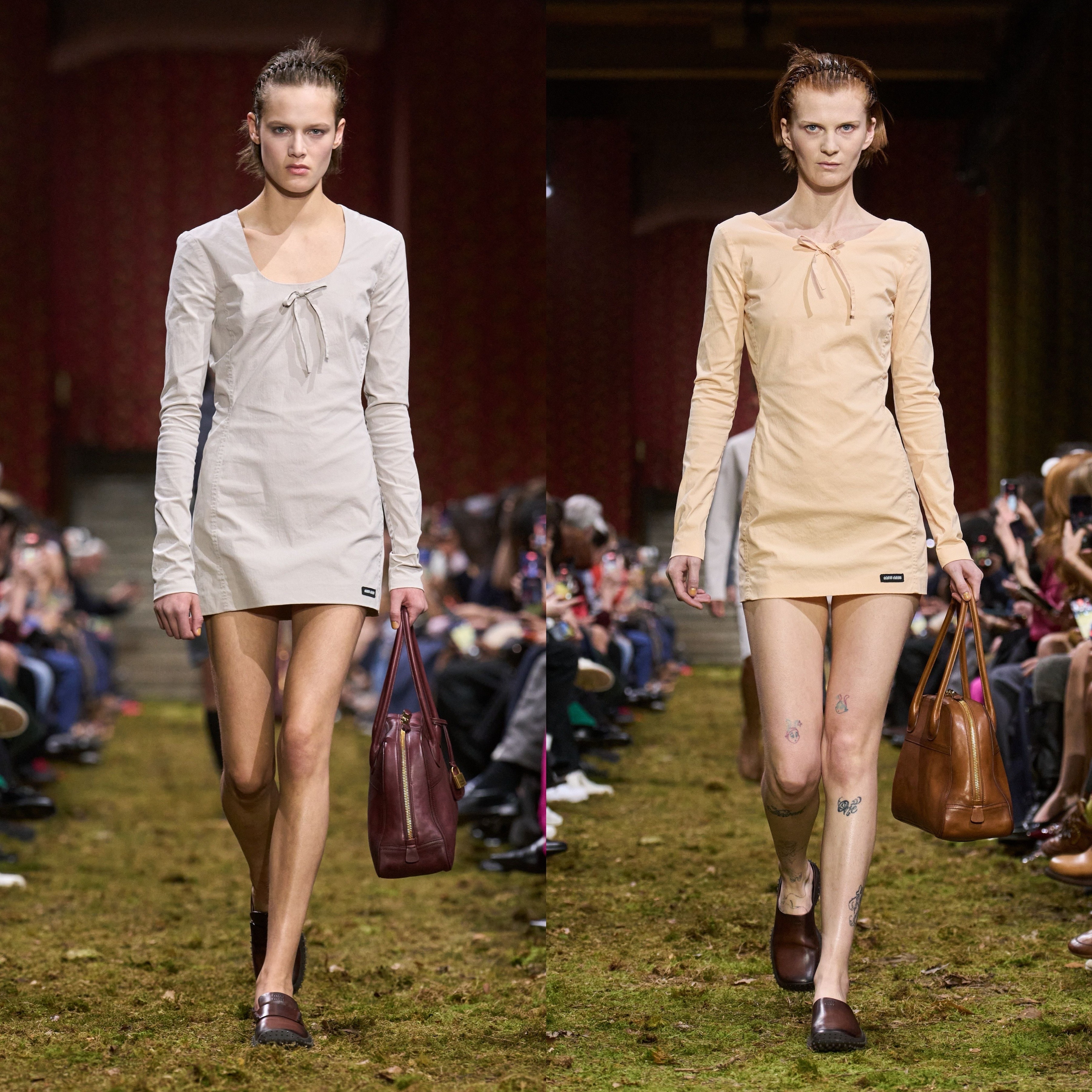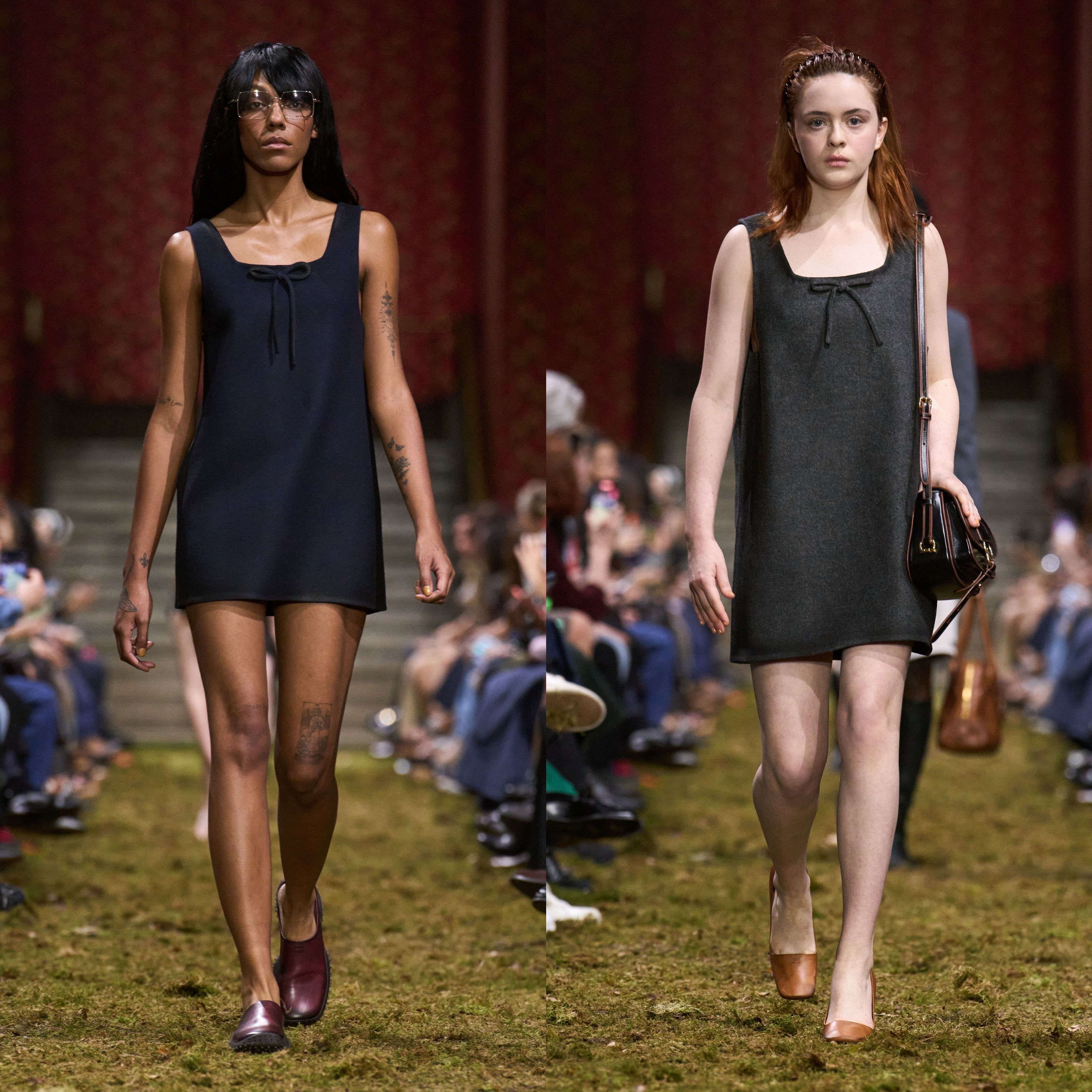 Miu Miu 2026 秋冬系列以「觉知亲密」为创作核心 ,在传承品牌基因的同时完成了一次温柔的突破 。Miuccia Prada 始终坚守品牌对女性内在与身体的关注 ,经典的蝴蝶结元素被全新诠释 ,斜纹呢 、刺绣薄纱等标志性材质继续登场 ,延续着 Miu Miu 独有的柔美元素与细腻表达 ,让复古不再是历史的复刻 ,而是穿越时空的风格共鸣 ,彰显品牌一贯的女性叙事内核 。