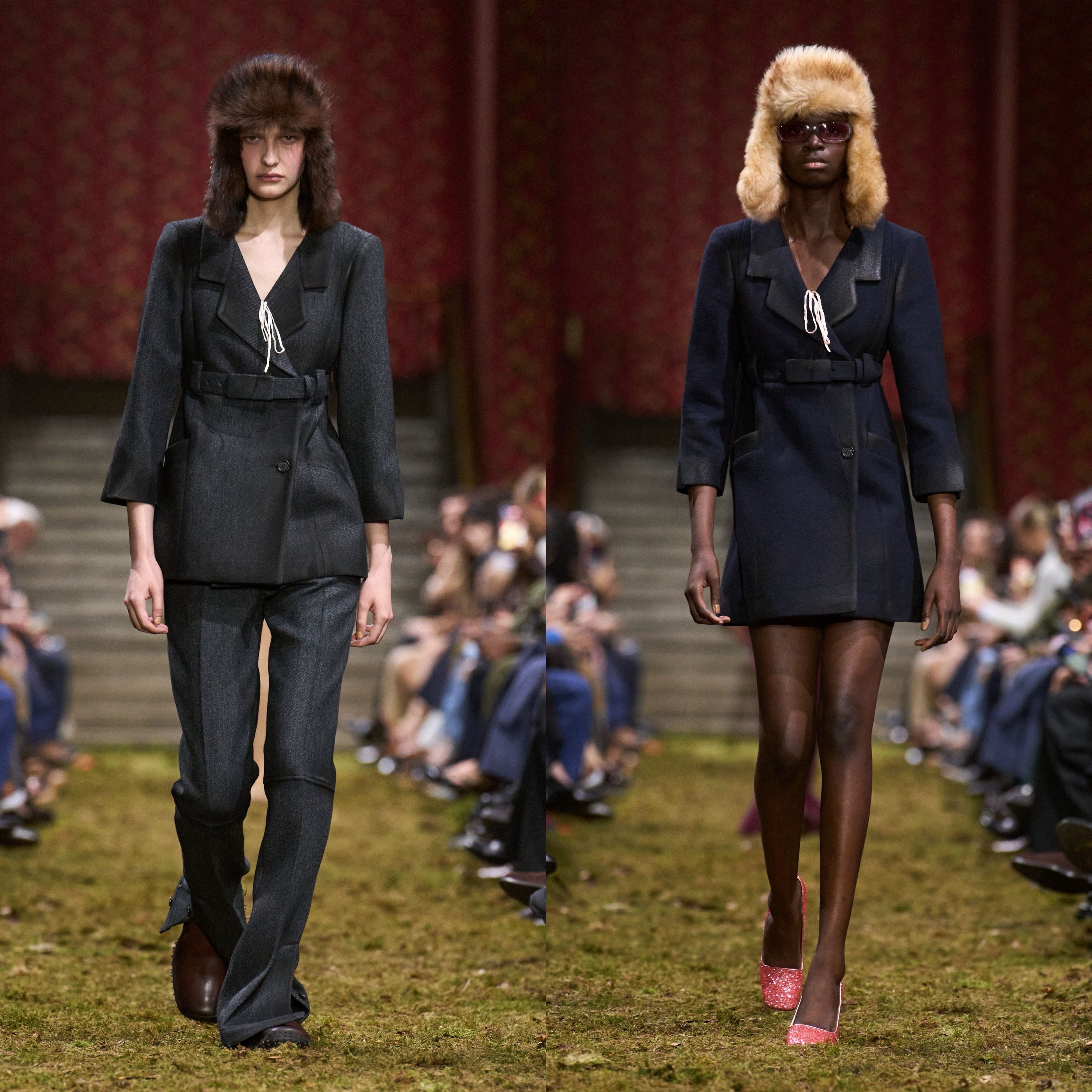 本季大秀的全新探索 ,也让服饰成为身体与自我的联结载体 ,开启了更具深度的表达方向 。洗水面料 、棉质府绸 、水洗双面羊绒等亲肤材质的运用 ,让服饰回归纯粹贴肤的状态 ,夸张放大的廓形在尺度碰撞中塑造出独特张力 ,羊羔毛里衬 、帽子与手套的搭配则让装饰成为对身体的赞美 。巴黎耶纳宫内宫殿与原始森林构造的双重秀场空间 ,更让服饰与场景呼应 ,强调每个个体的独特性 ,将对身体主权的掌控 、温存的性别力量融入设计 ,让 Miu Miu 的女性表达在柔软与力量中找到新的平衡 ~