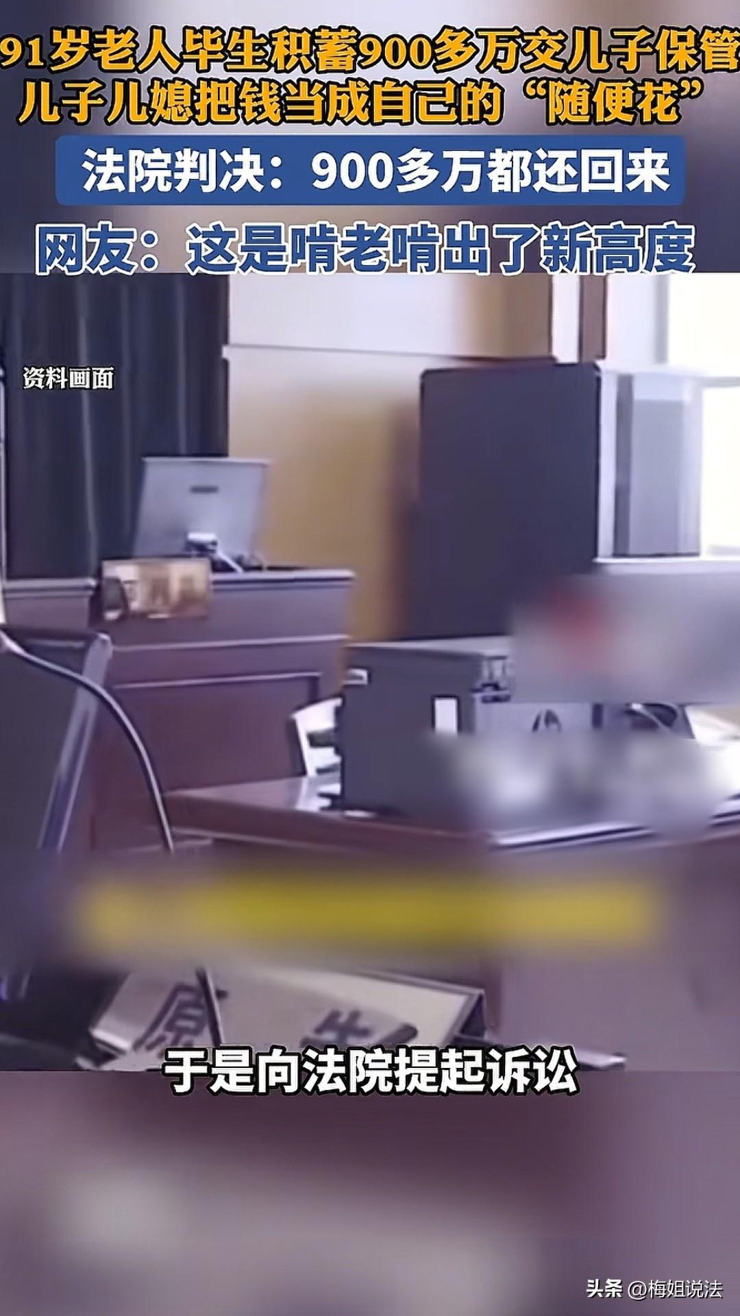 太心寒!广东深圳,90多岁的吕某把900多万养老本交给儿子保管,儿子、儿媳偷偷拿他的钱还房贷,吃喝玩乐,儿媳离世后又把钱留给自己的姐姐,吕某要钱未果,一气之下把他们全告了,最后结果大快人心! 90多岁的吕某这辈子并不容易,老伴在多年前就去离世了,她一直一个人生活。 眼看岁数越来越大了,吕某就怕哪一天出现什么意外,就打算把自己这些年的老本全部整理出来,让自己的儿子吕某保管。 跟儿子商量完以后,老太太就把自己住了几十年的老房子给卖了,然后手里的大小存折全部收集起来。她算了算,这加起来得有900多万了。 钱收集的差不多以后,她就赶紧去了银行,毕竟这么多钱,自己这么大岁数,万一有什么问题太不安全了。 到了后,老太太就把900多万分批次全部转给儿子,转的过程也非常的顺利,柜员很有耐心,老太太心里感觉暖暖的。 钱转完以后,吕某赶紧让儿子查查,看收到没有。儿子表示都收到了,让老母亲放心,这钱放他这儿是最安全的。 老太太觉得还是儿子靠谱,这么多钱放哪她都不放心,这儿子没白养活,老了以后靠谁都不如靠儿子。 不过此时老太太看儿子有多好,后面看儿子就有多坏,甚至还直接把儿子给告了。 一天早上,吕某正在家中休息,忽然接到儿子的电话,口口声声说老太太的钱都让儿媳妇乔某留给自己的姐姐了,老太太一听气得不行,自己的钱跟儿媳妇的姐姐有啥关系? 接到儿子的电话,老太太一点儿不敢耽搁,急匆匆的就往儿子家里赶,看到儿子以后,老太太连忙问咋回事。 刚开始,她的儿子吕某还想遮掩、糊弄老太太,但是别看他的老妈90多岁了,脑子可一点都不糊涂,三言两语就让儿子老老实实地交代了。 原来儿子吕某、儿媳乔某这两口子在收到老太太900多万的转账以后,乐的几天几夜都没合眼,看着这么大一笔钱,他们一直拿不定个主意该怎么花。 商量了几天后,他们决定把900多万的一部分给还上房贷,剩下的那些就给他们两口子当零花钱。这件事情,老太太一直被蒙在鼓里,他们也从没想过告上老太太。 几年以后,儿媳乔某离世了,办完葬礼以后,儿媳的姐姐乔某某拿着遗嘱要来分钱。吕某当时就震惊了,不知道怎么回事。 原来他老婆在临终之前留下了遗嘱,把自己名下房产的一半、300万的存款,全让自己的姐姐乔某某继承。 吕某没想到自己老婆临终时会这么对自己,他是又生气又后悔,一个电话就把自己老妈给搬来了,私自动老妈钱的事自然也瞒不住了。 知道事情的原委以后,老太太也急眼了,表示我的钱只是交给你们两口子保管,啥时候让你们花了。 儿子吕某态度也非常的激烈,表示你把钱转给我,我怎么就不能花?乔某某认为自己妹妹的遗嘱是合法的,必须把钱给她,三方发生了激烈的争吵。 最后,老太太一怒之下将自己的儿子吕某、儿媳的姐姐乔某某一并给告了。 其实,从老太太的角度来看,他们私自把她的养老钱给花了,以后自己的晚年生活都没保障,应该把这900多万还给她。 但是,从另外俩人的角度看,他们的说辞好像也不是完全不占理。 这事儿按法律程序走的话,该怎么办呢?最后应该怎么判? 《民法典》第897条规定,保管期内,因保管人保管不善造成保管物毁损、灭失的,保管人应当承担赔偿责任。但是,无偿保管人证明自己没有故意或者重大过失的,不承担赔偿责任。 庭审中,结合这个案件的具体情况,以及相关法律条款,最后判定吕某的儿子须把他自己母亲900多万的养老本全部还了。 而乔某某在继承她妹妹遗产的前提下,需要跟吕某一起偿还这笔钱,如果超出了遗产的范围,那乔某某就不用负担了。