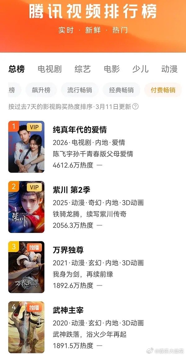 纯真年代的爱情付费榜峰值排近两年🐧剧第六,付费榜体现超点收入,看的是真金白银,纯真这个表现真的很亮眼了