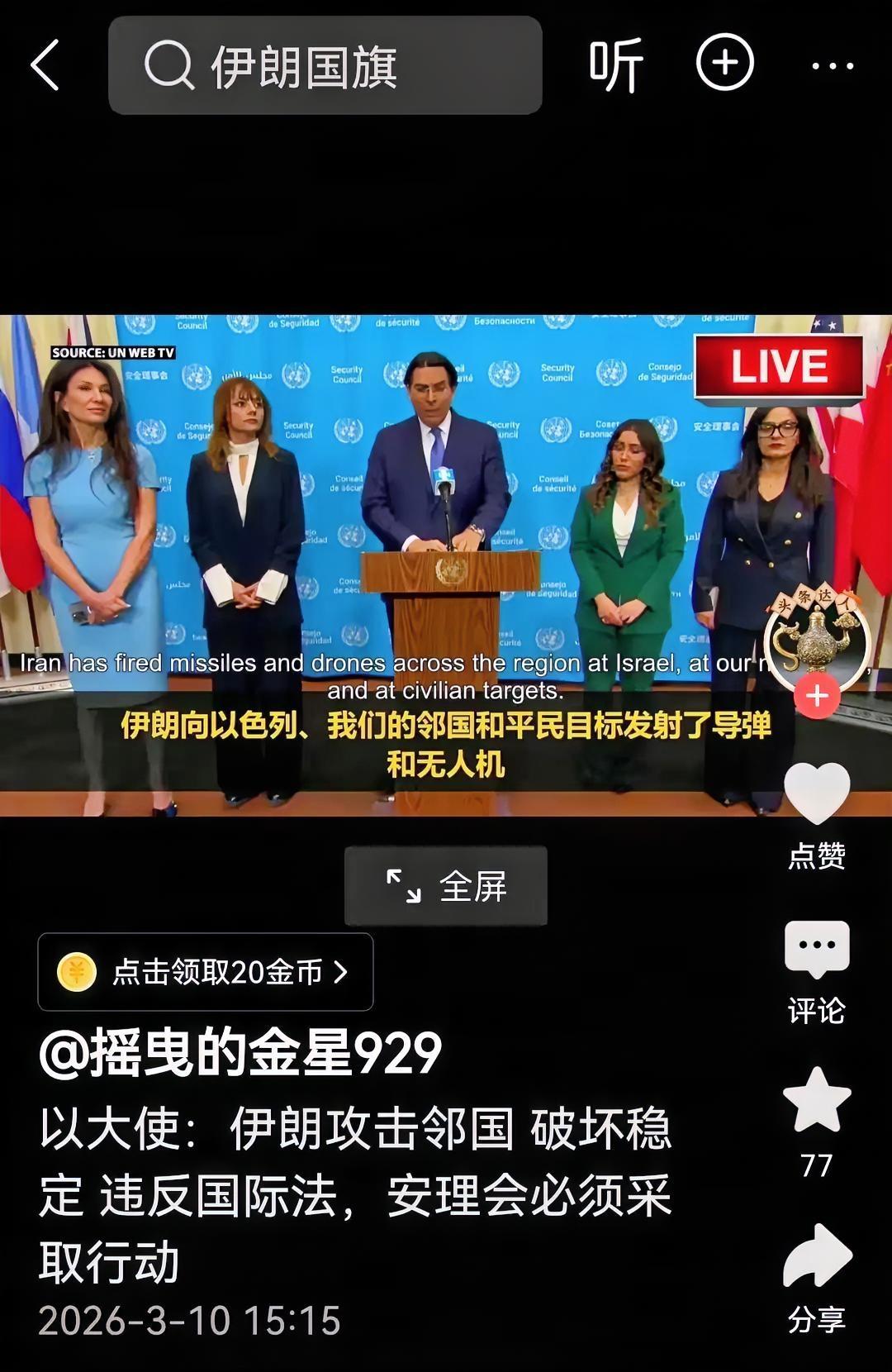 打到疼了才懂国际法?这双标真够讽刺 在伊朗的强烈反击下,以色列现在终于知道要遵守国际法了,打不赢跑到联合国哇哇叫,你们发动侵略战争的时候,为什么不讲国际法? 这话说到点子上了。当初以色列联合美国绕过联合国,未经安理会授权就对伊朗本土发动大规模空袭,炸导弹基地、袭指挥中枢,连伊朗的核研究设施和民用储油站都不放过,那时候怎么不提《联合国宪章》里“禁止使用武力侵害他国领土完整”的条款?怎么不强调国际人道法里“区分军事与民用目标”的原则?那会儿只看到自己的军事优势,觉得“先发制人”就是天经地义,把主权国家的红线踩得稀碎,把平民安危抛到九霄云外。 看看以色列当初的操作有多离谱。出动近百架战机突袭德黑兰核心区域,精准打击总统府周边的安全机构,造成大量平民伤亡,连儿童医院都没能幸免。攻击伊朗的石油储库和转运中心,引发火灾和“黑雨”污染,直接破坏民生能源设施,完全突破了国际人道法“比例原则”的底线。更过分的是,把伊朗高层领导人、宪法机构会议人员列为打击目标,公然干涉他国内政,这哪里是自卫,分明是赤裸裸的侵略行径。当时的联合国安理会紧急会议上,中方代表当场怒斥,美以的行为违反国际法基本准则,是将中东推向灾难的单边霸凌。 可如今伊朗的反击精准命中军事目标,海法炼油厂、特拉维夫军事设施接连遇袭,以色列就慌了神,连夜跑到联合国哭诉,说伊朗违反国际法、伤害平民。这种“打得起就不讲理,打不过就求公道”的双标,实在让人贻笑大方。要知道,国际法从来不是某一方的遮羞布,而是约束所有国家的共同规则,适用范围不分强弱,评判标准不分先后。 以色列在联合国会议上大谈“生存威胁”,却忘了自己47年来持续针对伊朗的战略布局,忘了自己在加沙地区的无差别轰炸早已被联合国人权理事会谴责为战争罪。 当初他们用“消除核威胁”为借口发动打击,却拿不出伊朗迫在眉睫威胁的实锤证据,既不符合《联合国宪章》第五十一条的自卫权要件,也违背了“卡罗林原则”里“即时、紧迫、无选择余地”的国际法铁律。现在伊朗用实打实的反击让他们付出代价,他们才想起国际法的存在,这不是懂规则,而是怕吃亏。 更讽刺的是,联合国的斡旋始终绕不开霸权干扰。美国拥有安理会否决权,多次阻止谴责以色列侵略的决议,让国际规则在强权面前形同虚设。但伊朗的反击始终守住底线,只针对军事目标,不刻意波及平民,这与美以当初的肆意践踏形成鲜明对比。说到底,以色列跑到联合国喊冤,不过是想借国际平台给自己找补,试图掩盖自己发动侵略、践踏规则的事实。 国际法的核心是公平正义,不是强者随意践踏、弱者被迫接受的工具。以色列当初发动战争时无视规则,如今被反击后才想起规则,这种双重标准本身就违反了国际法的基本精神。国际社会看的不是谁哭得多惨,而是谁先打破规则,谁先践踏底线。 各位读者你们怎么看?欢迎在评论区讨论。