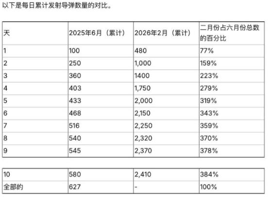 战争要结束的标志?以色列数据:伊朗导弹发射率下降92% 从2月28日开战第一天,伊朗对外发射480次导弹,骤降至3月9日开战第10天的仅40次。峰值下降了约92%。 无人机发射次数也呈现同样的下降趋势,10天来,从720次骤降至60次,降幅也高达92%。 这种发射频率的下降与2025年6月以色列和美国对伊朗发动的“十二日战争”期间观察到的模式相似。 当时,伊朗的导弹发射从第一天约100枚,下降到第9天的仅5枚。 很多人看这组数据都会犯嘀咕,这是不是意味着这场冲突要慢慢收尾了。毕竟不管什么战争,一方的火力输出断崖式下跌,都不是正常的作战节奏。 先明确一点,这92%的降幅不是以色列故意夸大的数据,是其军方通过实时监测汇总得出的结果,和美方后续公布的相关数据基本吻合。 伊朗不会平白无故减少导弹和无人机发射。开战第一天就火力拉满,说白了就是想靠饱和攻击打美以一个措手不及,也想借此展现自己的反击实力,为后续博弈占得先机。 可这种高强度发射根本撑不住。伊朗战前的导弹库存虽有两千多枚,但开战10天就消耗了一大半,远超其战时产能极限。 美以联军早摸透了伊朗的软肋,开战初期就把打击重点放在了伊朗的导弹发射平台和生产设施上。截至3月3日,以色列军方就摧毁或瘫痪了伊朗约300个导弹发射器,相当于其一半以上的发射平台被清除。 这些发射平台比导弹本身更难补充。受长期国际制裁影响,伊朗机动导弹车所需的精密零件根本没法大量进口,毁掉一辆就少一辆,后续很难快速补齐。 除了发射平台被摧毁,伊朗的导弹生产和储存设施也遭到了持续轰炸。美以联军精准打击了伊朗的发动机生产厂、炸药厂和地下储存仓库,直接切断了导弹的后续补给链路。 伊朗的导弹月产能平时只有150至200枚,即便启动战时动员提升产能,也远跟不上开战初期每天几百枚的消耗速度。这种“打得多、造得少”的局面,逼着伊朗不得不减少发射频率。 这还不是最关键的原因。美以联军发动的电子攻击,彻底瘫痪了伊朗的作战指挥体系。开战之初,美以就发动了大规模电子干扰,覆盖伊朗西部整个电磁频谱,让伊朗的雷达变成“瞎子”,通讯频道彻底中断。 更致命的是美以的“斩首”打击,开战第一天就锁定了伊朗高层齐聚的官邸,导致伊朗最高领袖和革命卫队高层一度失联。指挥链断裂后,各个导弹部队变成了信息孤岛,没法收到统一的饱和攻击指令,只能零星还手。 就算伊朗还有剩余导弹,也没法组织起有效的大规模攻击。很多战术单位只能在缺乏高层指导的情况下自行决策,作战效能大幅下降,发射频率自然提不上来。 伊朗自身也在主动调整策略。对伊朗来说,导弹和无人机是其长期战略威慑的核心,要是过早耗尽库存和发射平台,后续在谈判桌上就会彻底丧失筹码。 欧洲武器专家曾判断,按照开战初期的发射强度,伊朗的核心导弹库存一至两周内就会触及危险警戒线,高超音速导弹更是10天左右就会告罄。伊朗很清楚这一点,只能主动节约使用,为持久战保留实力。 再回头看2025年的“十二日战争”,当时伊朗的导弹发射也呈现出同样的下降趋势。从第一天约100枚降到第9天的仅5枚,背后逻辑和现在高度相似,都是发射平台受损、库存告急加上指挥体系受创的结果。 那这是不是就代表战争马上要结束了?答案其实没那么简单。伊朗导弹发射率下降,更多是自身实力受限后的无奈之举,不是主动放弃反击。 目前伊朗还保留着100到200个导弹发射器,仍有一定的反击能力。它现在减少发射,是为了保存实力,等待合适的反击时机,而不是彻底投降。 美以这边也没有停下脚步,依旧在持续打击伊朗的军事设施,试图彻底削弱伊朗的反击能力。双方的博弈还在继续,只是从之前的“火力对抗”变成了“消耗博弈”。 不过有一点可以肯定,伊朗导弹发射率的断崖式下降,已经让战场态势发生了明显变化。美以联军逐渐掌握了战场主动权,而伊朗的处境变得越来越艰难。 后续局势会不会走向结束,还要看双方的博弈结果。但就目前来看,这92%的降幅,确实是这场战争走向缓和的一个重要信号,至少短期内不会再出现开战初期那样的高强度火力对抗了。
