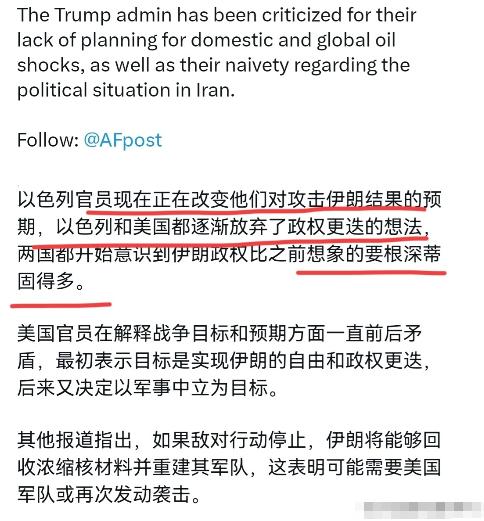 让人意外!下场打的那么凶狠的以色列也打不动了,以色列释放了想要收手的信号!3月11日,外媒报道称,以色列官员现在正在改变他们对袭击伊朗结果的预期,政权更迭正在慢慢地从以色列和美国的谈判桌上被拉下来,两国都开始意识到伊朗政权比以前想象的要根深蒂固得多。 军事对抗的现实,首先给了以色列一记重拳。以色列原本以为凭借先进的防空系统和空中优势,能快速压制伊朗,可真打起来才发现,伊朗的反击根本挡不住。 伊朗手里握着超过三千枚弹道导弹,即便打了这么久,可用数量还维持在一千五百到两千五百枚之间,中程导弹能覆盖以色列全境,高超音速型号更是让拦截系统束手无策。 更关键的是,伊朗早就挖好了数百座地下导弹城,深的能到五百米,藏在山体里,就算是隐形轰炸机也炸不穿,还能边打边生产,无人机和导弹的生产线24小时不停工。 反观以色列,被吹上天的“铁穹”防空系统彻底失灵,拦截成功率从宣称的78%暴跌到32%,不是不想拦,而是拦不起也拦不住。 伊朗先用低成本无人机消耗拦截弹,再趁换弹的间隙发射导弹,一枚伊朗导弹成本才二十万美元,以色列一枚拦截弹却要三四百万甚至上千万,一轮齐射下来,以色列砸进去的钱比对方多几十倍,这种烧钱的消耗战,根本撑不了太久。 而且伊朗的打击精准度超出预期,以色列的炼油厂、指挥中心、防空阵地接连被摧毁,本土防空警报天天响,社会运转都快停摆了,这和之前“碾压对手”的局面完全不一样。 背后的美国掉链子,更是让以色列没了底气。 美国一开始跟着喊打喊杀,可打了没几天就先松口了。 特朗普最初说战争两三周结束,后来又改口四到八周,现在干脆释放谈判信号,连“政权更迭”都不提了。 之所以转变这么快,是因为美国国内已经扛不住了。 全国五十多个城市爆发反战游行,加州油价飙升,民众抱怨战争让自己买单,州长公开抨击政府的对伊政策。 两党在开战权问题上吵得不可开交,共和党内部也有分歧,特朗普为了稳定国内政治基本盘,不得不调整态度。 更现实的是,美国每天打仗要花十亿美元,弹药库存告急,连部署在韩国的萨德拦截弹都要调过来补缺口,长期消耗下去,只会拖垮自己的经济。 原本计划派往以色列的总统特使也临时取消了行程,这背后的分歧和犹豫,其实已经说明美国不想再被以色列绑着往深坑里跳。 中东盟友的不配合,让以色列彻底陷入孤立。 沙特作为中东关键国家,明确告诉伊朗,不会允许美国和以色列利用自己的领土、领空发动袭击。 这意味着以色列失去了重要的前进基地,想扩大打击范围都没了依托。 其他海湾国家也不想被卷入战火,伊朗之前的反击已经波及阿联酋、科威特等国,这些国家更希望局势降温,而不是跟着以色列硬刚。 没有了地区盟友的支持,以色列在中东成了孤家寡人,再想大规模军事行动,后勤和战略空间都受到极大限制,根本没法长期维持攻势。 伊朗内部的凝聚力,更是让美以的“政权更迭”幻想彻底破灭。 前任最高领袖在空袭中遇难后,西方媒体都预测伊朗会陷入权力真空、社会分裂,可没想到伊朗迅速完成了权力交接。 专家会议高票选出新最高领袖穆杰塔巴,这位长期在军政体系深耕的领导人,不仅有革命卫队背景,还因至亲在袭击中遇难而态度强硬,一上台就得到了革命卫队、议会和民众的一致支持。 当选当天,伊朗军方就以他的名义发射导弹,直接释放强硬信号。 这种炮火中的平稳过渡,展现出的政权韧性远超美以想象,所谓“推翻领导层”的目标,从一开始就找错了方向——伊朗不是一盘散沙,反而在外部压力下空前团结,民众的抵抗意志被彻底点燃,这让以色列的军事打击失去了最核心的政治目标。 说到底,以色列的收手,本质上是对现实的妥协。 他们原本想速战速决,却陷入了一场打不起、赢不了、退不得的消耗战。 军事上,拦不住伊朗的导弹和无人机,本土安全受到直接威胁;政治上,美国的支持越来越弱,盟友纷纷观望,自己陷入孤立;经济上,战争开支巨大,民生和社会运转受到严重影响;战略上,原本的“政权更迭”目标完全不切实际,伊朗政权比想象中稳固得多。 继续打下去,只会让自己付出更大的代价,还得不到任何实际好处。 所以现在释放收手信号,调整对伊朗的预期,不是以色列心慈手软,而是经过十几天的实战检验后,不得不承认的现实——伊朗不是能轻易拿捏的对手,硬刚到底没有赢家,及时止损才是当下最现实的选择。 这场冲突也让中东格局发生了微妙变化,曾经以为的“碾压”变成了“僵持”,霸权主义的套路在顽强的抵抗面前,终究显得力不从心。