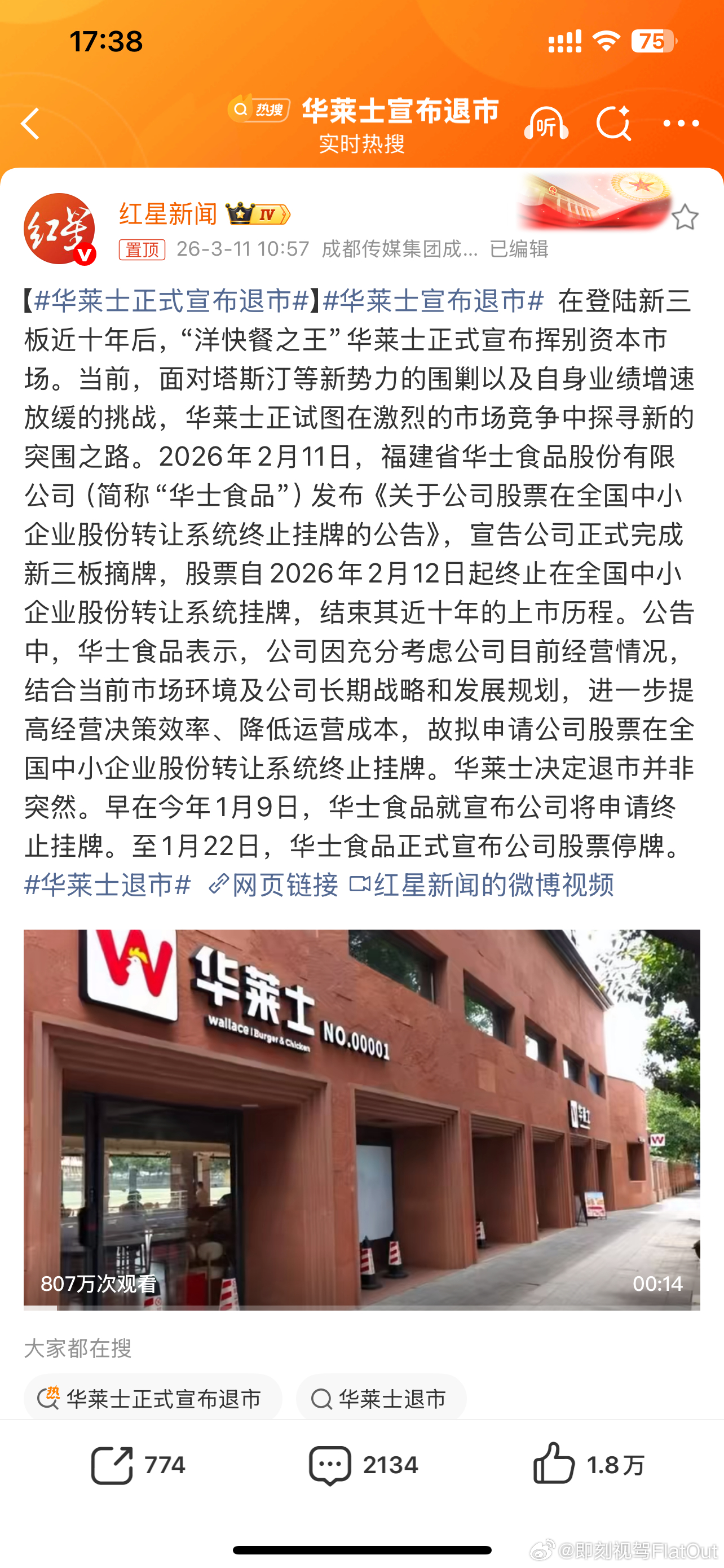 华莱士正式宣布退市只是退出资本市场门店正常运营的这也是企业一种运营策略手段不过有一说一塔斯汀的扩张速度确实快呀