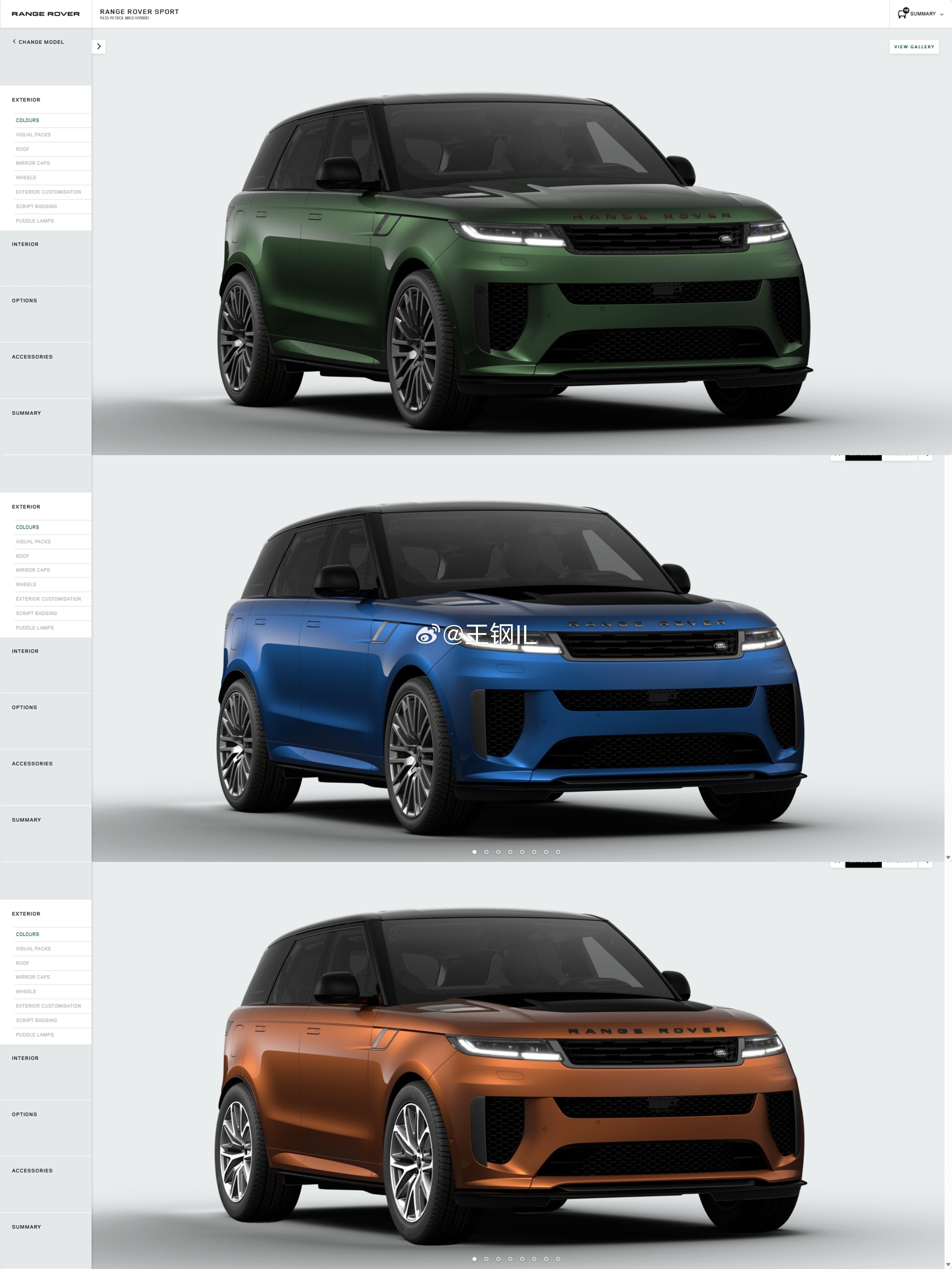 揽胜运动SV终于即将迎来Bespoke高定服务项目。在24年款Edition One和25年款Edition Two两个限量版本之后,26年款揽运SV将回归常规版,带来更多的常规车漆和SV豪华车漆选择。内容过于丰富,今天先用几个接近的颜色致敬上一代L494 SVR的竞速绿、埃什托里尔蓝和马达加斯加橙。路虎揽胜sv
