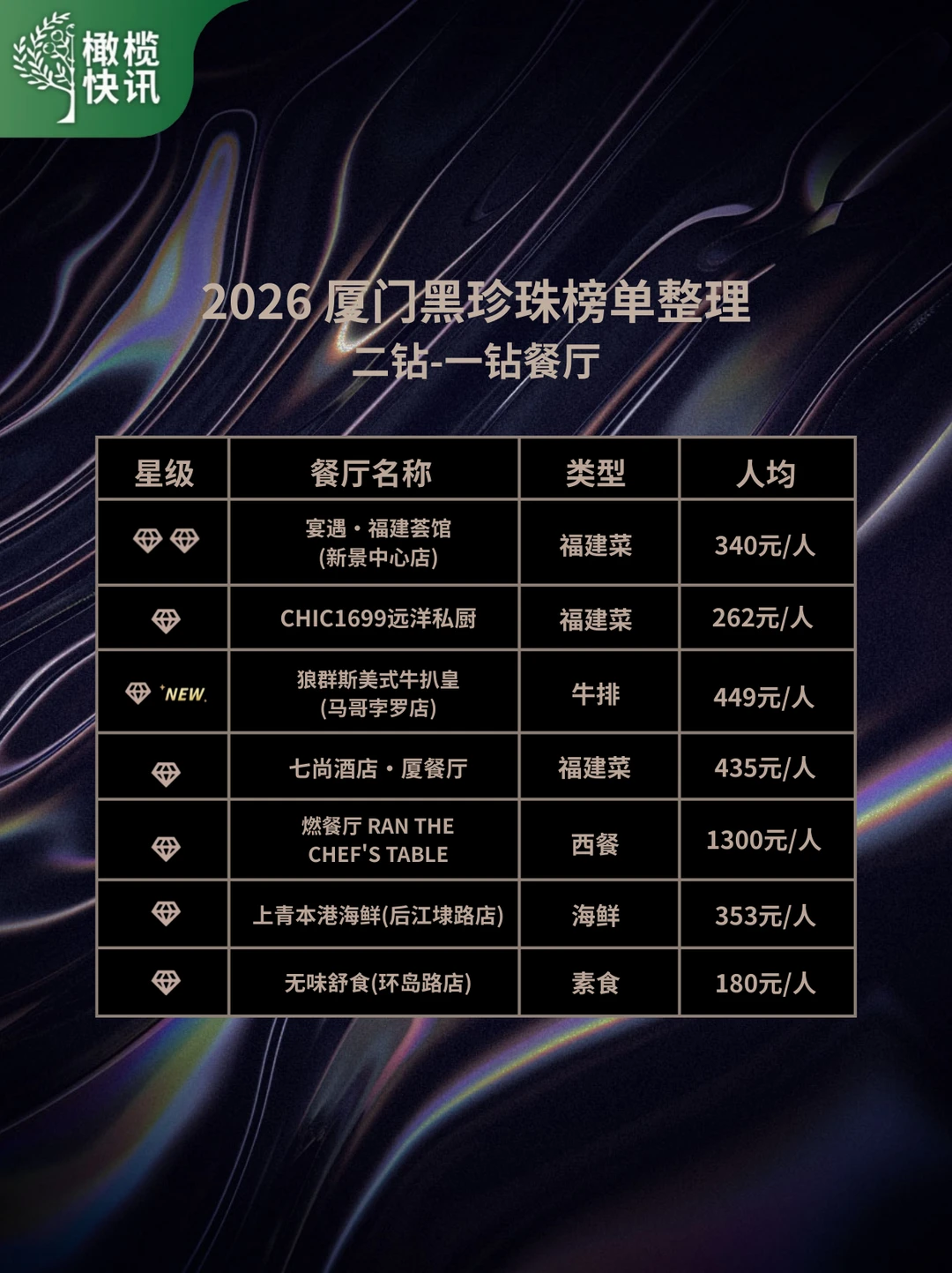 2026厦门黑珍珠榜单出炉!新增1家,你吃过吗