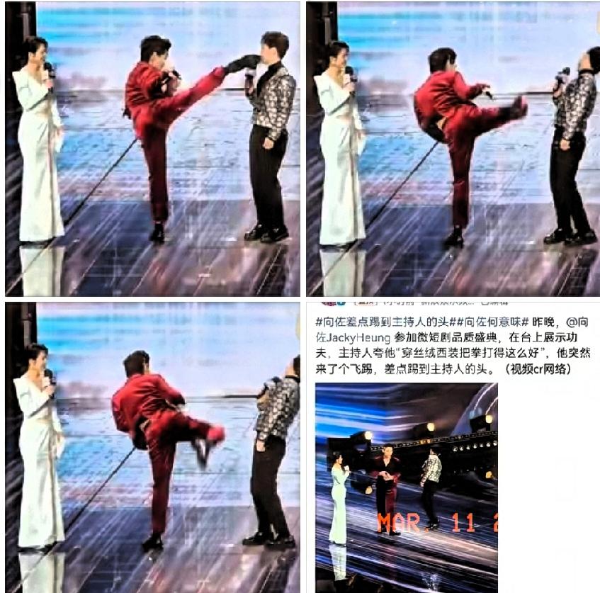 向佐又整活,这一脚差点把主持人吓懵,真不是耍帅这么简单。微短剧品质盛典上,主持人刚夸完他穿丝绒西装打拳帅气,向佐当场即兴飞踢,腿风直逼对方头部,主持人本能后仰才惊险躲开,现场一片惊呼。 虽说他功夫底子扎实,但这种无彩排、无预警的动作,实在太冒险,很容易变成舞台事故。很多人说这是真性情,但我觉得,真性情从来不是不顾他人安全的理由。 舞台上讲究分寸感,不提前沟通就突然发力,再帅的动作也会让人觉得失礼。好在事后向佐及时道歉,主持人也高情商解围,这事才算平稳过去。 功夫是亮点,但分寸才是体面。与其靠惊险动作博眼球,不如把专业和礼貌做到位,这样的圈粉才更长久。 你觉得艺人在舞台上即兴发挥,该不该提前和搭档沟通呢?