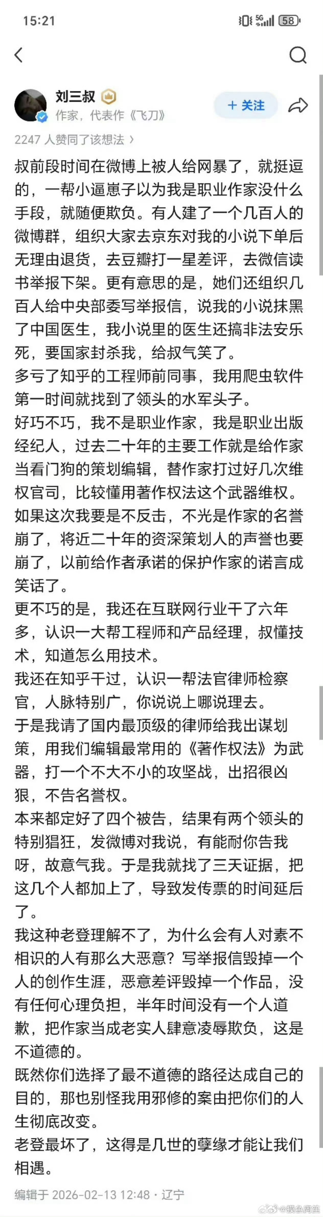 飞刀原作者把一直带节奏黑作品的人告了,真是干得漂亮为民除害啊