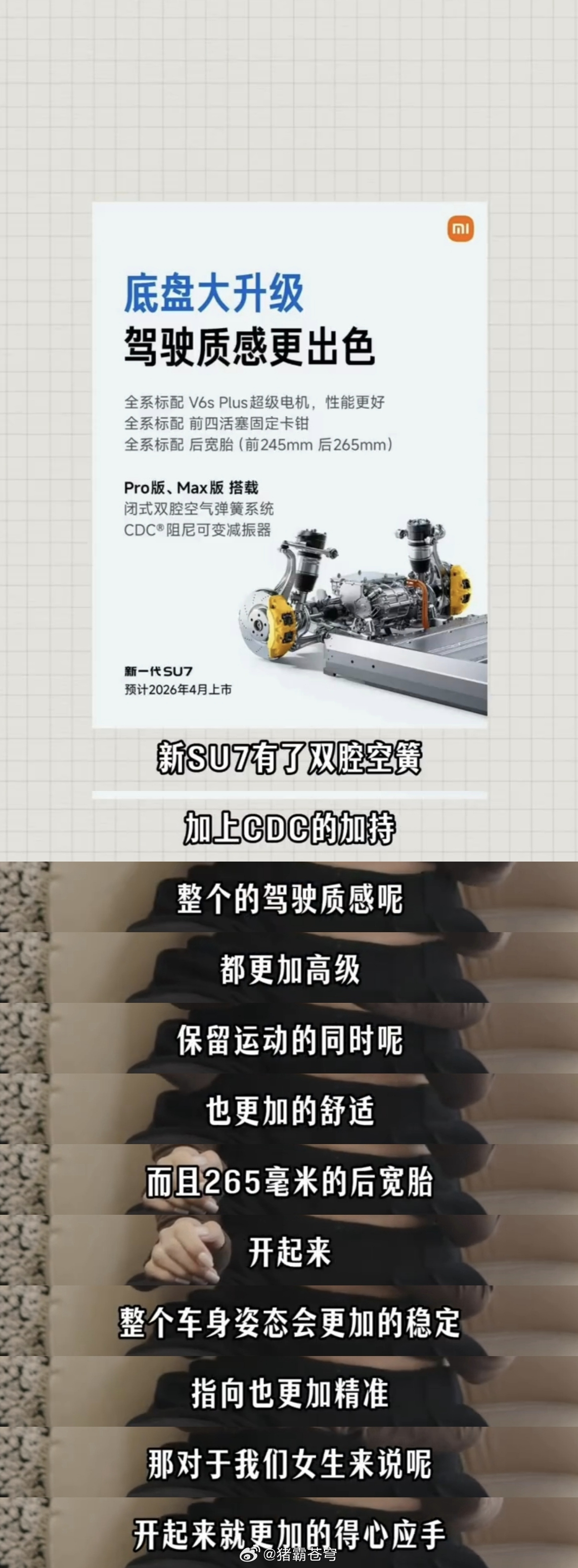BBA车价大降销量回温难看完全网爆料,媒体对小米SU7的动态评价直接拉满,公认它是50万内最好开的纯电轿跑,这份硬核实力真的藏不住!论行驶质感,双腔空簧+CDC精准调校直接拉满高级感,底盘紧致又细腻,过弯滤震一气呵成,坐进车内就能感受到越级豪华底蕴,每一次行驶都是品质享受。