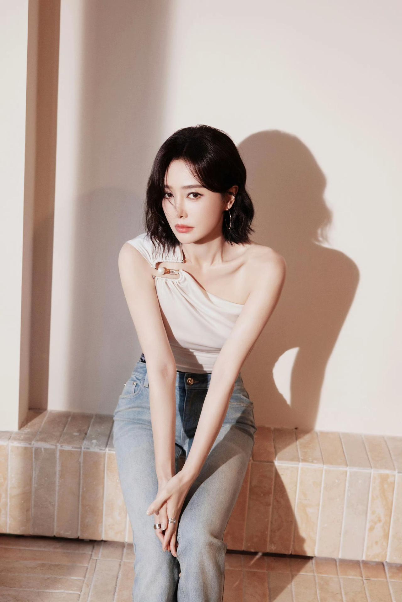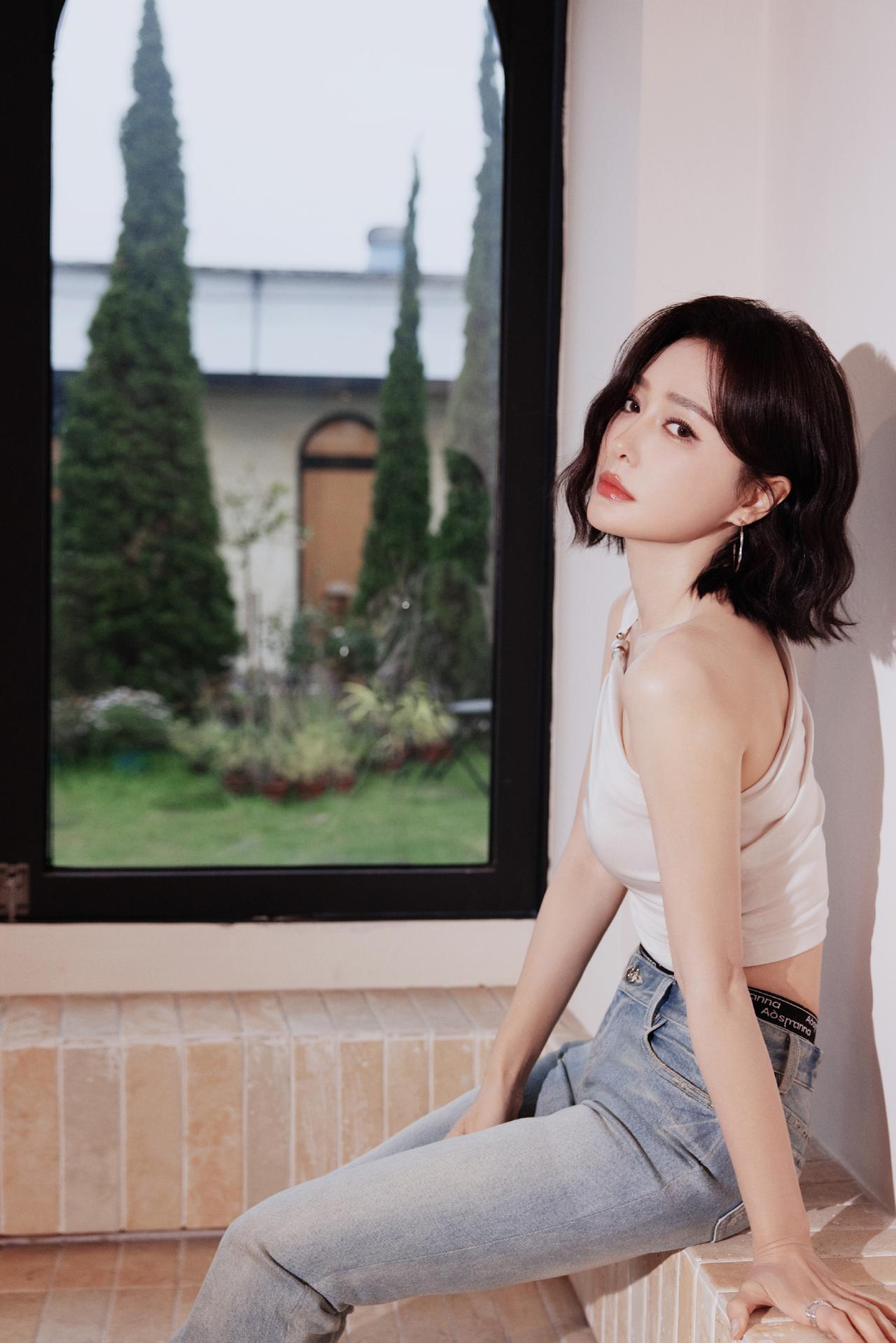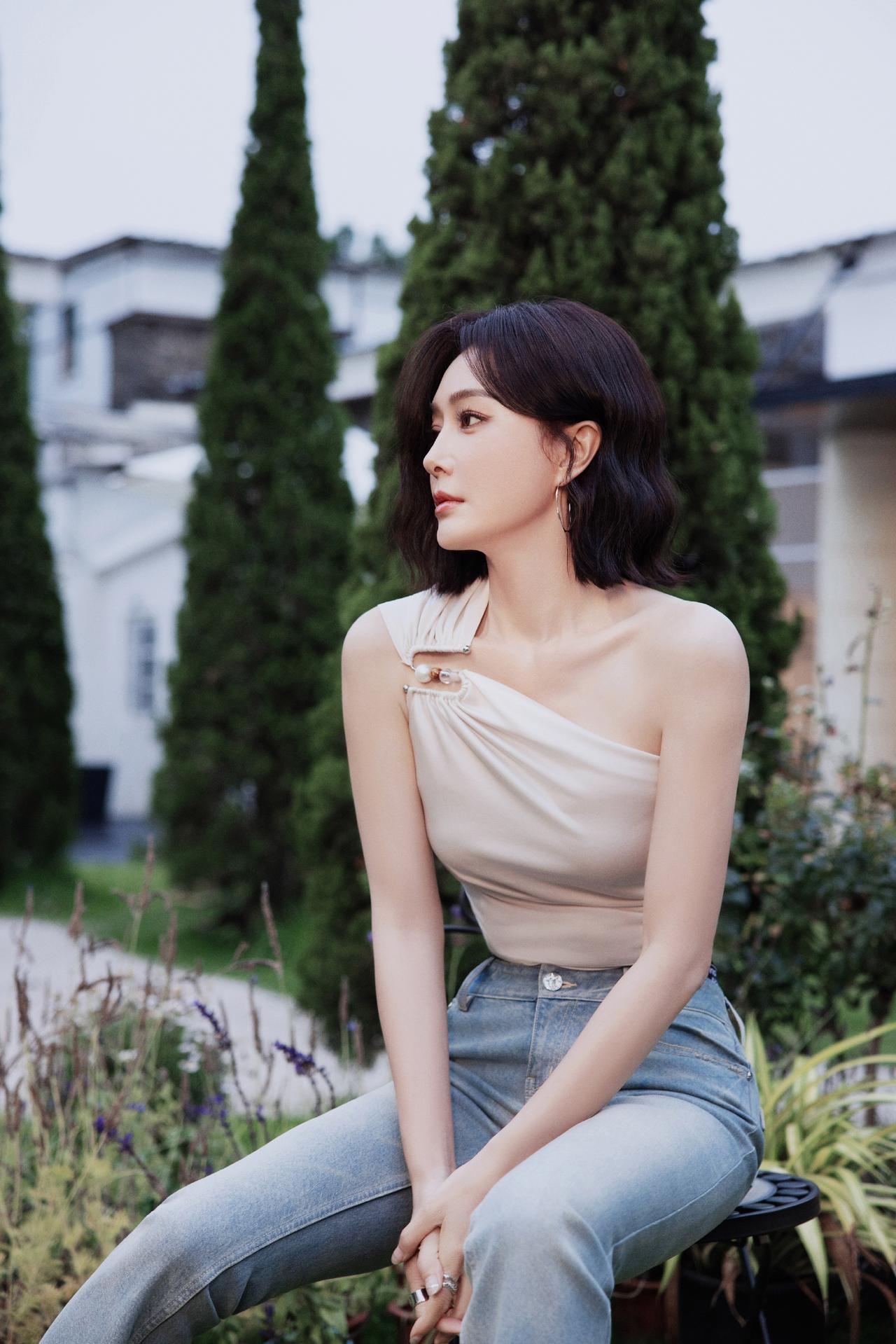 优雅坐于绿意中,浅笑如春日暖阳。秦岚!!!