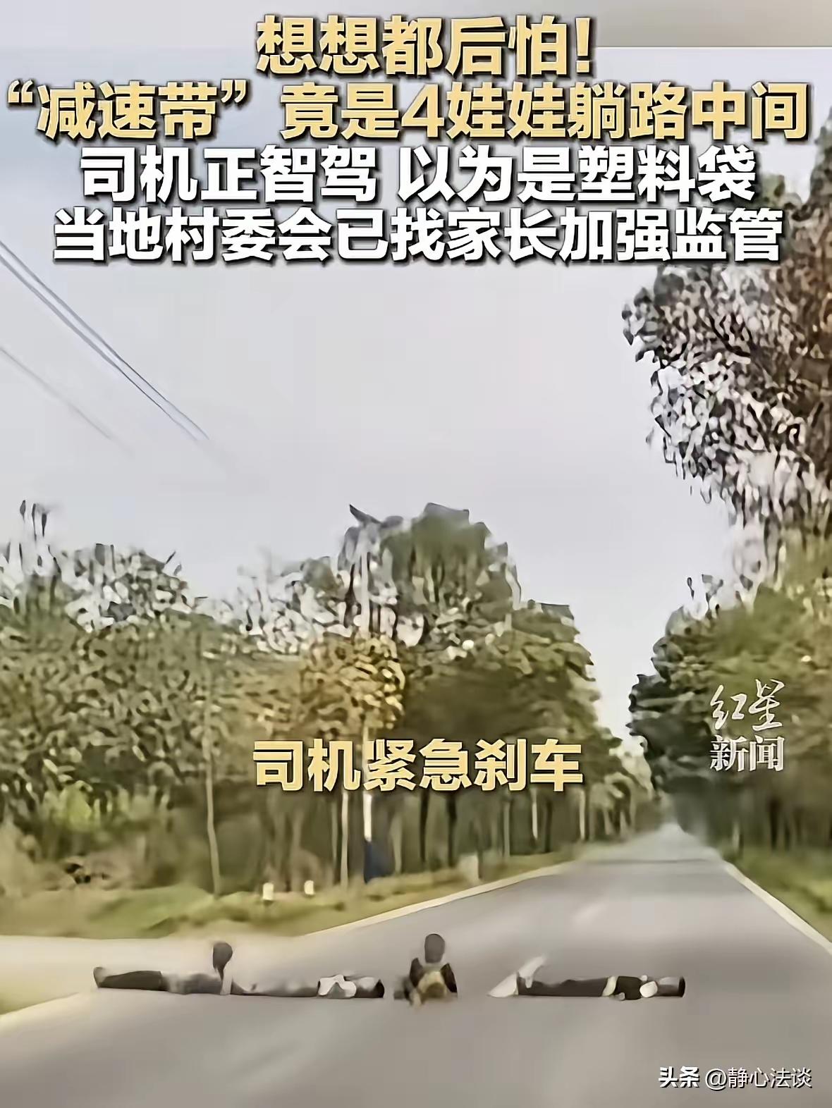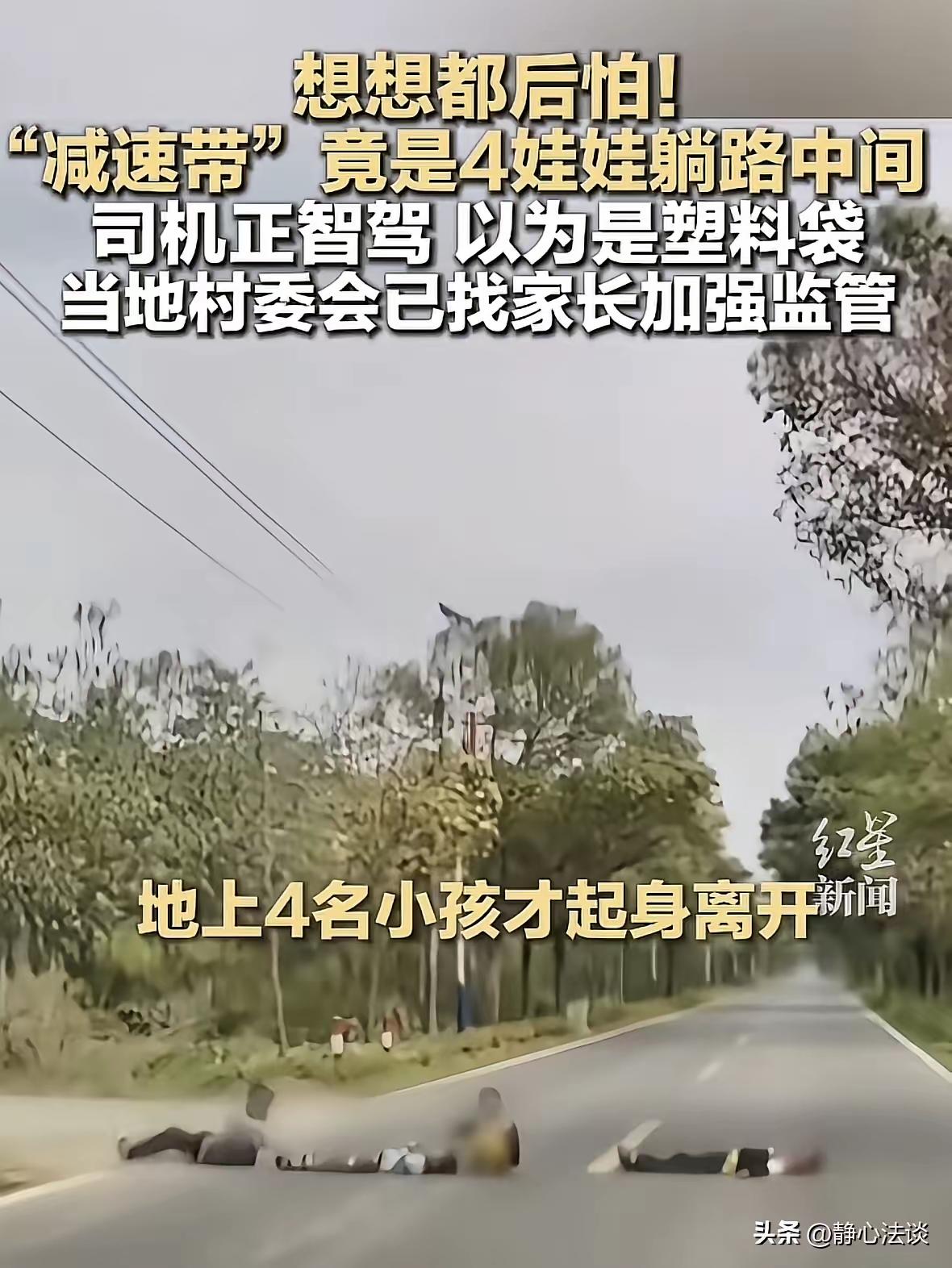 这起事件真是让人惊心动魄,也暴露出当前农村或城郊地区儿童安全监管的严重隐患。从多角度来看,有以下几点值得深思和提醒: 孩子们的危险行为根本不能接受 躺在车流穿梭的马路上,尤其是县道这种车辆速度较快的路段,是极度危险且极其不负责任的行为。孩子们心无畏惧的“游戏”,暴露出他们对交通安全知识的严重匮乏,也反映出孩子们安全意识的缺失。 家长监护责任严重不到位 非上学时段孩子本应待在家中或安全的活动场所,可孩子却能够随意跑到车来车往的县道上,说明家长的看护和教育严重失职,甚至可能是放任。法律上家长承担监护责任和赔偿责任,这种行为既是对孩子生命安全的不负责,也是对社会公共安全的威胁。 智能辅助驾驶系统救了一命,但不能放松警惕 智能辅助驾驶技术确实提升了驾驶安全,但系统只是辅助工具,关键还是驾驶员的注意力和预判。此次事件中,司机妻子的警觉和黄金般的反应才避免了悲剧。任何技术都无法替代驾驶员的集中注意力和责任心。 交通安全教育必须加强,且落实到行动 不仅要对孩子们进行交通安全教育,让他们真的理解躺在马路上的危险;更需要对家长加强法律法规宣传和安全监管责任的督促。尤其是在农村和县城这种交通安全意识相对薄弱的地方,政府、学校和社区都应形成合力,共同守护儿童安全。 社会呼吁和多方努力不可少 网友调侃“皮面沾凉水,让他们拥有一个完整的童年”,也是表达对孩子任性无知本能的无奈和期盼。普法宣传、家庭教育、学校课堂以及社区活动都要扎实开展,只有让孩子明白生命的珍贵,知道什么是真正的“玩”,才能杜绝类似事故发生。 总的来说,家长的监管缺失是这起危险事态的根本原因,孩子的危险行为需要严肃纠正,而智能驾驶技术的普及也提示我们,交通安全依然离不开社会整体的责任意识和法治保障。希望相关部门持续跟进,加强巡查,切实落实家长监管职责,让孩子远离马路危险,守护一个完整且安全的童年。 你觉得呢?对于这类事,家长和社会应如何更好地采取措施防范?儿童安全认知 亲子安全隐患