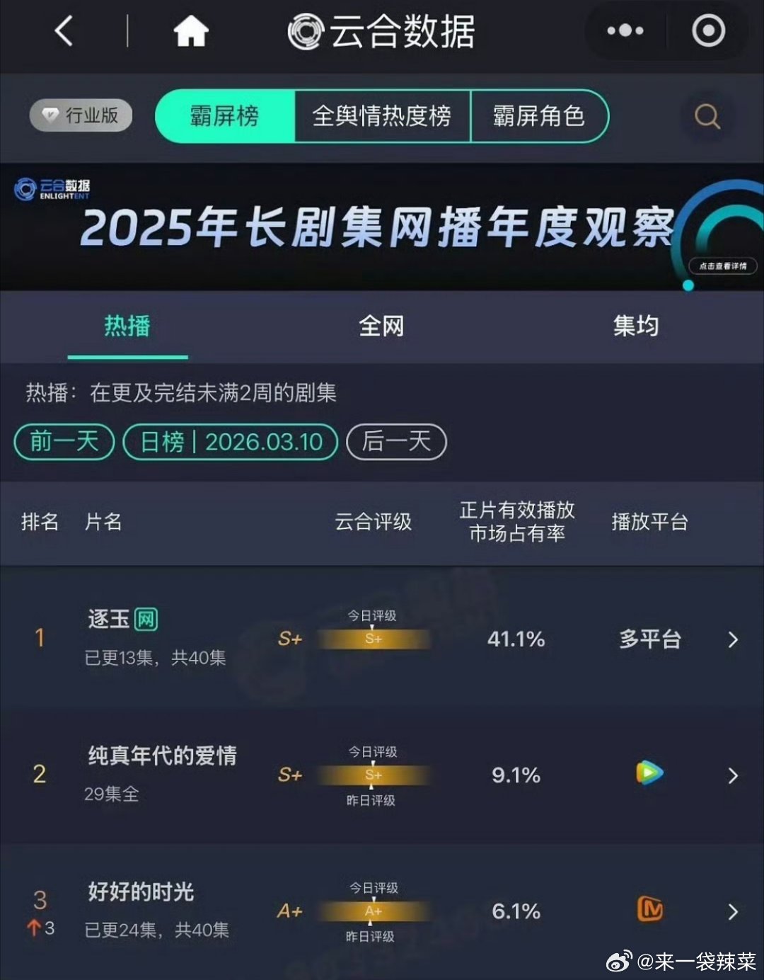 网友总结逐玉破万日46项数据📊周边418万,云包场35.6万座,cvb古装暂史