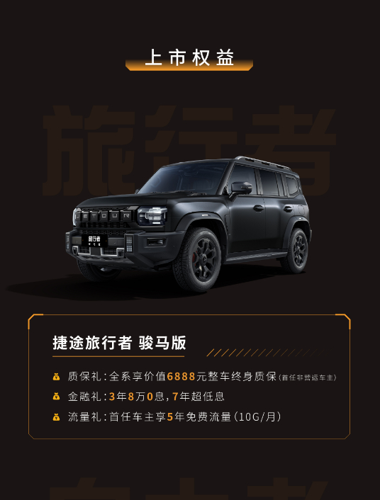 骏马捷途 骏马版的捷途兄弟来了,有自由者和旅行者两款车型可选,售价11.79-15.49万元。哑光车漆、熏黑车标,再配上红色卡钳,一眼就是个“酷小伙儿”。鲲鹏动力、3.0AI科技座舱,开起来也更有劲儿,用起来也更聪明。那么问题来了,这么酷帅的哥儿俩,你更中意谁?马年开骏马一路皆捷途