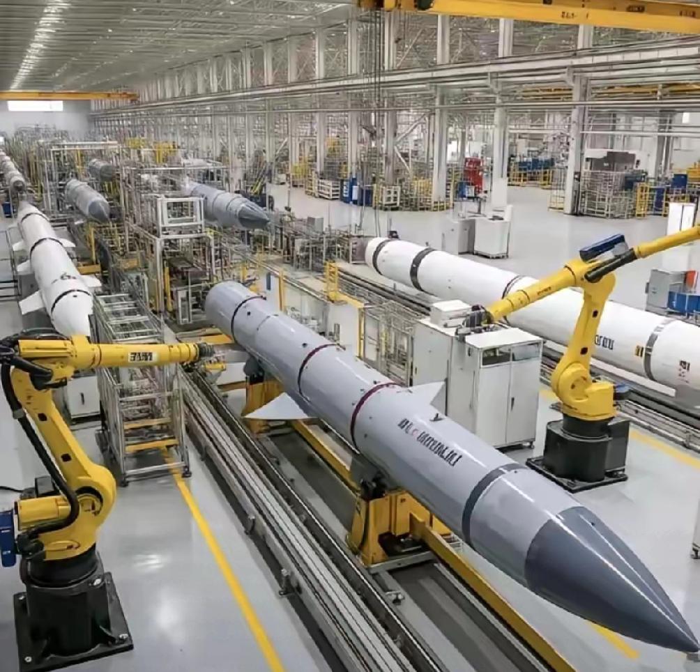伤害性很大,侮辱性更强。中国罕见地公开了PL-15导弹的全自动生产线,号称一天的极限产量约为100枚,100枚这个数字意味着什么? 先给你算笔最直观的账。美国对标PL-15的AIM-120D导弹,年产能不过500枚。中国一条生产线一天造100枚,一周就是700枚,直接把美国一年的产量比了下去。这还只是单条产线,中国庞大的军工体系里,类似的柔性生产线绝非孤例。 这不是简单的数字对比,是工业实力的降维打击。这条产线是全自动化的,12台六轴机械臂各司其职,AGV智能小车来回转运,从弹体吊装、导引头装配到电路装订,全程无人干预。六名技术人员三班倒,就能支撑24小时不间断运转,十年前28名工人一周才能造一枚,现在效率翻了十倍不止。 更关键的是,所有设备全部国产化,不受制于人。原材料、核心零部件、生产工艺,整条产业链自主可控。原材料管够,生产线就能一直开,这种底气是那些供应链依赖海外的国家根本没有的。 别只盯着产量,PL-15本身就是空战规则的改写者。双脉冲固体火箭发动机,让它在最后30公里仍能保持4马赫以上的高速机动,传统导弹到这时候早成了没动力的“铁棍” 。氮化镓有源相控阵雷达导引头,探测精度比传统雷达提升3倍,还能抗干扰、反隐身,200公里外锁定目标不是难事 。 歼-20、歼-16、歼-10C都能挂载它,“A射B导”的协同作战能力,让它能在安全距离外发起致命一击 。现在,性能顶尖的导弹配上恐怖的产能,这组合谁能顶得住? 中国公开这条生产线,从来不是为了炫耀。这是一种明确的战略信号,是告诉所有潜在对手:中国维护主权和领土完整的决心,不是说说而已。你有你的先进武器,我有我的快速量产能力,真到关键时刻,我能让你见识到什么叫“饱和打击”。 现代战争早就变了,不再是单纯比拼导弹精度,而是拼整个产业链的响应速度和可持续火力。库存只是缓冲,真正的胜负手在工厂里。两周内的防御靠库存,之后的火力输出,全靠生产线的节奏。 那些鼓吹“唯精度论”的,根本不懂现代战争的逻辑。美军现在也在疯狂加码低成本导弹生产,就是意识到了数量的重要性 。中国这次公开,就是把底牌亮给世界看:我们不惹事,但也绝不怕事。你敢挑衅,我就有能力让你付出代价。 各位读者你们怎么看?欢迎在评论区讨论。