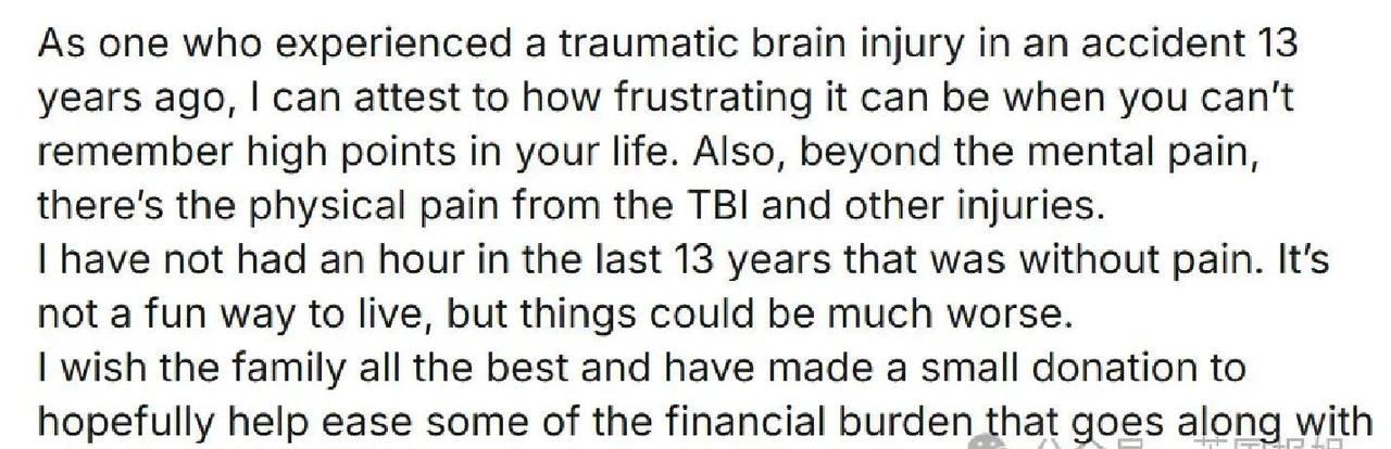 1月10日弗吉尼亚汉普顿,16岁男孩内森过马路瞬间被车甩飞30英尺,醒来后大脑记忆卡死在每4小时重置一次的恐怖循环里! 这不是电影桥段,而是真实砸在一家人头上的噩梦。内森那天和朋友去GameStop买生日游戏礼物,离开时横穿繁忙马路,一辆2019 Audi Q7直接撞上来,他整个人飞出老远,重重摔在沥青上。 背部、尾骨、骨盆多处骨折,肺部严重挫伤,头部撕裂6英寸长口子,手上深可见骨切口。急救现场剪开衣服找心跳,父母赶到却被警察拦住无法靠近,母亲当场崩溃。 抢救三天后脱离危险,但创伤性脑损伤让一切变味。内森只能记住过去4小时内的事,之前所有重要记忆统统清零。吃完饭转头就问“我今天吃过东西吗”,早起如果叫醒太早,一整天都在拼命拼凑发生了什么,精神像被困在无尽迷雾。 医生评估,坚持每周三次物理治疗,3到6个月有望恢复到慢跑水平,可记忆问题才是最大隐患。至少半年无法返校,彻底与同龄人隔离,16岁最该疯玩的年纪被迫困在家里,反复面对肉体痛和脑子空白的双重折磨。 这种记忆重置比骨头断裂更残忍——肉体疼能忍,精神上每4小时就被迫“失忆重生”,那种持续的迷茫和无力感,才是真正把人逼到崩溃边缘的。 全网数据显示,创伤性脑损伤后短期记忆障碍并不罕见,很多案例需要12-18个月甚至更久才能看到明显改善,年轻人恢复潜力大但不确定性极高。一旦形成慢性,生活质量直线崩盘。 内森一家现在面对巨额医疗账单、交通费、生活开支压力,母亲甚至丢了工作全职照顾。记忆损伤最难预测的部分,让未来像蒙了层厚雾,谁也不知道半年后会不会好转。 这场意外把一个普通少年的人生按下暂停键,提醒所有人:过马路那一秒的疏忽,可能换来一辈子都解不开的脑内死循环。
