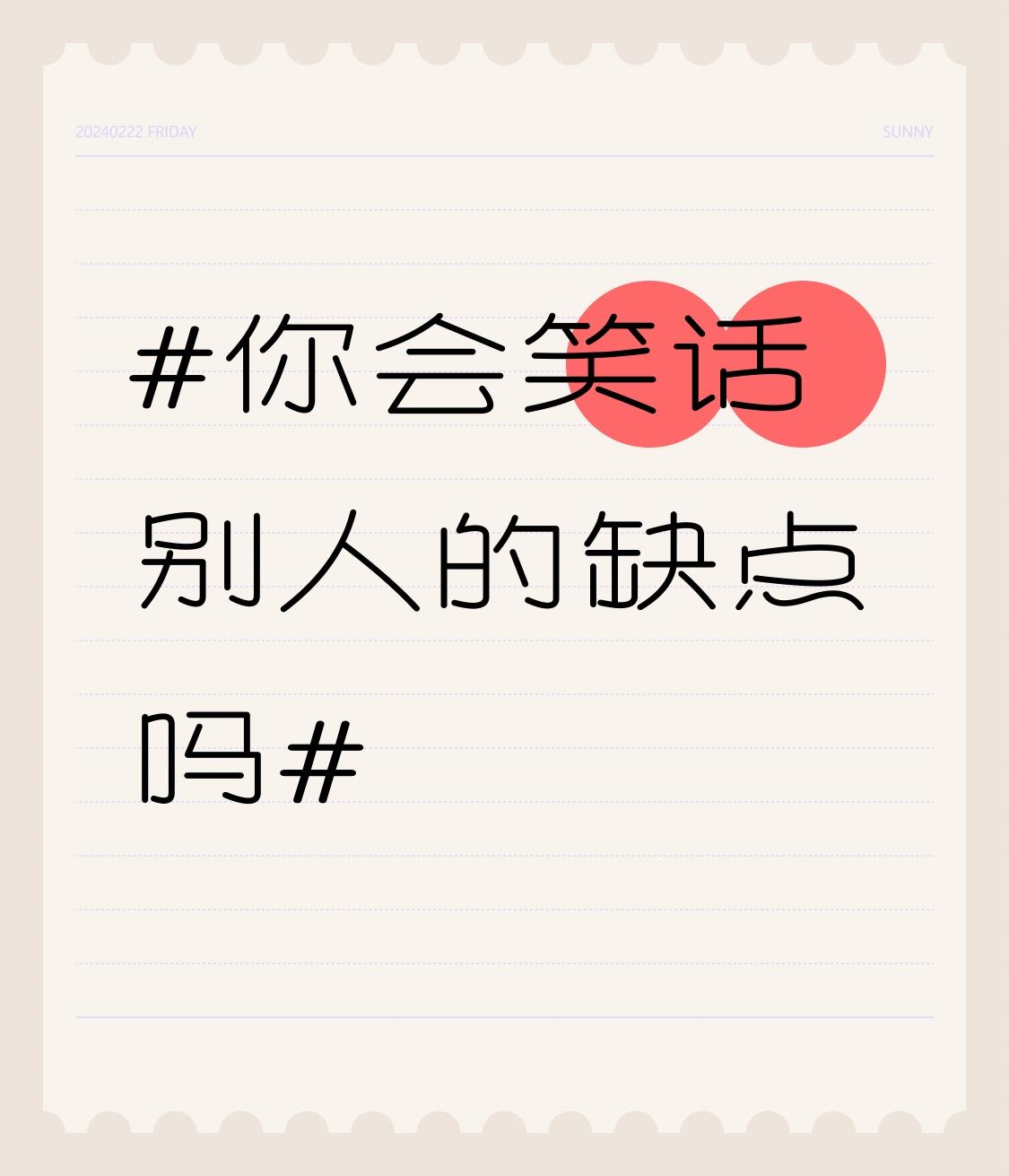 我不会笑话别人的缺点,笑话别人缺点的人,暴露的是自己的层次。有些人嘲笑胖的人“肥得像猪”,嘲笑矮的人“三级残废”,还美其名曰开玩笑,实际上是内心贫瘠狭隘。 当被嘲笑的人不悦,他们还会说“你怎么这么玻璃心”“这么开不起玩笑”,这其实是隐形暴力。缺点往往是当事人难以改变且想遮盖的,像身体残疾、外貌不完美等,都是心口的疤。真正高情商的人会把别人的缺点“藏起来”。尊重他人,不拿别人的缺点开玩笑,是基本的教养。