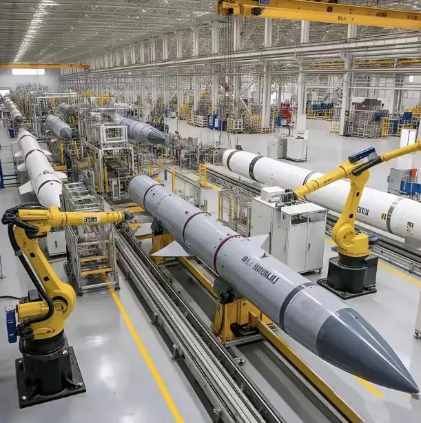 伤害性很大,侮辱性更强。中国罕见地公开了PL-15导弹的全自动生产线,号称一天的极限产量约为100枚,100枚这个数字意味着什么?   PL - 15并非普通导弹,实力强劲,它射程超200公里,末端速度能达4马赫,即音速的4倍,如此性能,使其在导弹领域不容小觑,展现出非凡的战斗实力。   更绝的是,它用了“双脉冲发动机”,既能滑翔飞行,又能快速突防,让敌方防空系统根本来不及反应。   导引头用的是氮化镓有源相控阵雷达,抗干扰能力直接提升300%,就算对方使出电子战手段,也难干扰它的“视线”。   生产线上,机械臂宛如拥有“火眼金睛”,具备敏锐洞察力,能精准捕捉微米级标记,它们精心组装,确保每个部件衔接紧密、严丝合缝,误差严格控制在0.1毫米以内。   “软件定义弹药”的创新设计成效显著,单枚导弹成本大幅削减40%,与此同时,其性能更胜美制AIM - 120D一筹,展现出卓越的性价比与先进性。   这条生产线可不是靠人工“手搓”,而是全自动化“黑灯工厂”,夜间关灯也能运行,全靠红外定位和AI视觉系统“看路”。   187秒就能完成核心装配,日产100枚的极限产能是美军同类产线的10倍,5G全连接架构让设备响应延迟低于20毫秒,AGV小车和机械臂配合得天衣无缝。   关键部件比如碳纤维复合材料、特种芯片、高能燃料全都是国产,再也不怕被“卡脖子”。   质量管控严苛至极,设有108道检测工序,X光探伤机火眼金睛,能揪出仅0.1毫米的裂纹,产品实弹射击表现卓越,命中率须超95%。   日产100枚是啥概念,战时三班倒,10天就能造出1000枚导弹,足够打一场高强度局部战争了。   印度空军曾因导弹短缺在马岛战争中吃过亏,但中国这条生产线支持“平时民品、战时军品”的弹性产能网络,全国200多家军转产示范工厂随时能转产导弹部件。   美国知名军事媒体《防务新闻》显得颇为急切,其披露中国导弹储备量已然超越美俄两国之和,且每月正以10% - 15%的速率持续增长。   这种“产能充裕”的战略自信,令美国深感压力,从而加速推进AIM - 260导弹的研发进程,然而,其生产线直至2027年方能形成产能。   PL-15生产线的公开,表面是秀产能,实则是战略智慧的集中爆发,在核时代,真正的安全不是靠军事扩张,而是靠规则共守与互信积累。   中国通过全产业链自主可控和技术突破,不仅实现国防安全,更在定义新的国际规则,从“零和博弈”转向“合作共赢”。   这种“产能即威慑”的逻辑,本质是对“核时代规则”的重新诠释:当小国拥有可信核威慑时,大国必须放弃军事冒险,转而寻求对话空间。   未来,中国需持续投入研发,保持技术代差优势,同时通过技术输出构建利益共同体,弱化地缘政治阻力。   唯有如此,PL-15这样的先进装备才能成为和平的守护者,而非冲突的催化剂。   这场静默的革命证明:在全球化4.0时代,最强大的竞争力不是封闭排他,而是开放共生,这才是破解“安全困境”的终极答案。