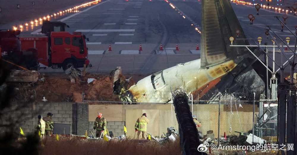 2024年12月29日,济州航空一架波音737客机在降落时因鸟击试图复飞失败,机腹着陆后滑行约1600米,最终撞上了这堵混凝土墙并引发大爆炸。
