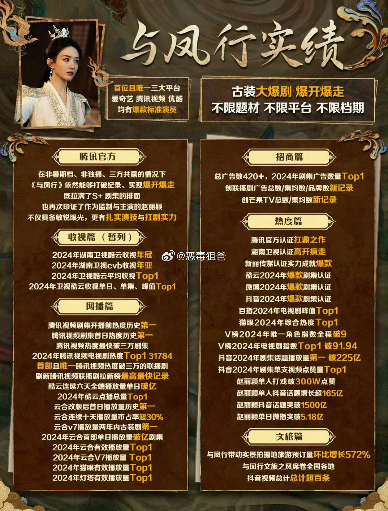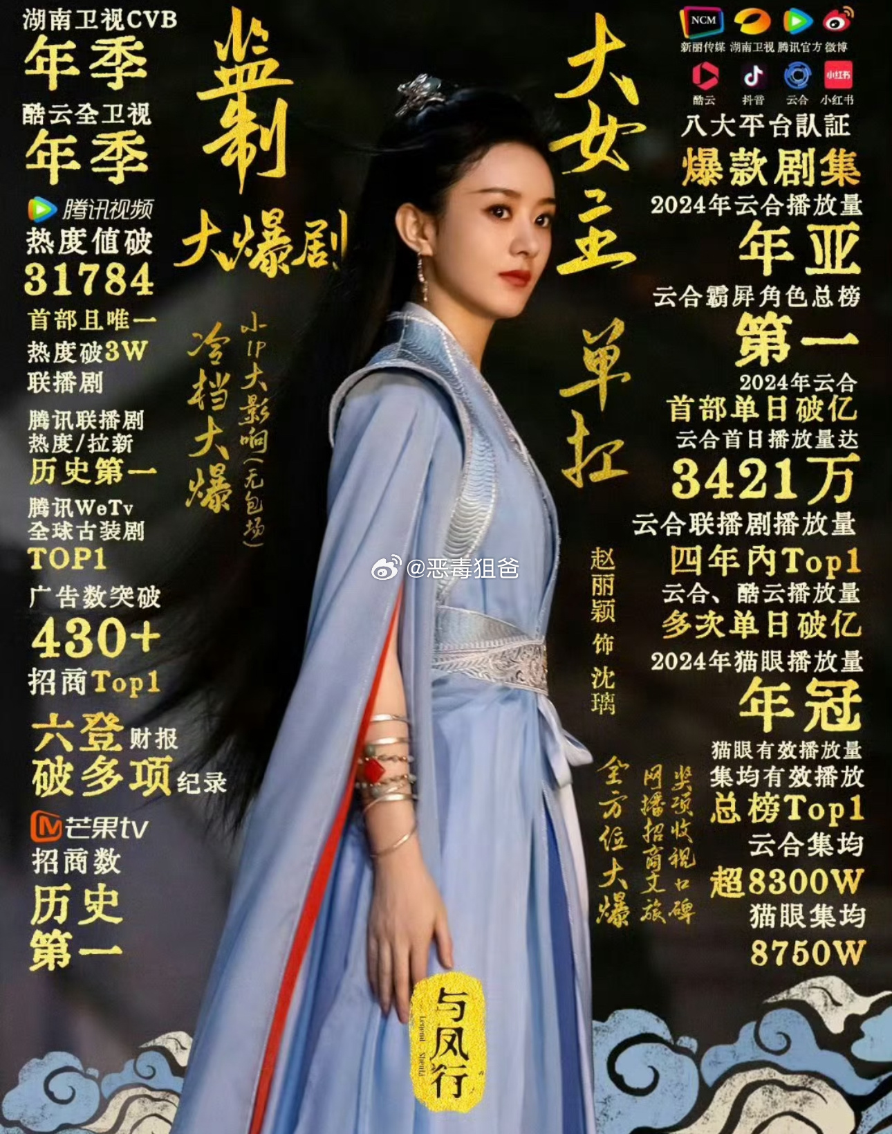 科普一下 内娱首部双平台破万剧集是赵丽颖《与凤行》虽然🥭没有破万的说法但从芒果前端播放量以及各项📊说明与凤行在🥭也是爆款已有破万的标准🔥双平台➕上🌟 晚8点开播🈚️云包场开播25小时39分钟腾讯破3w热度