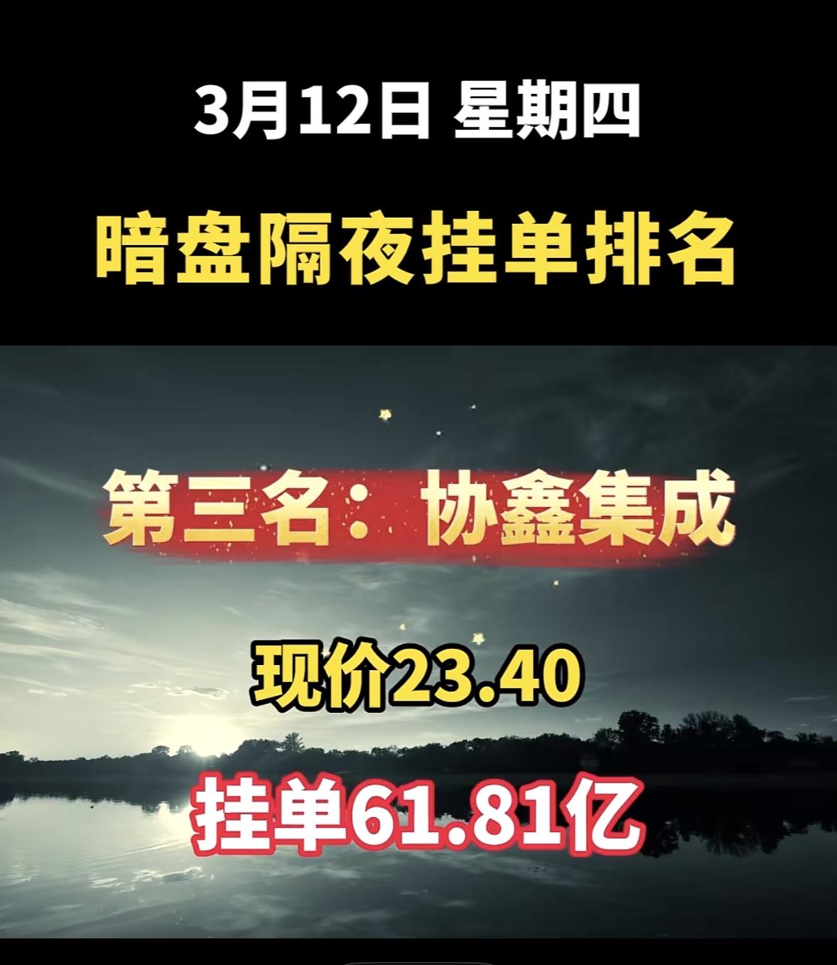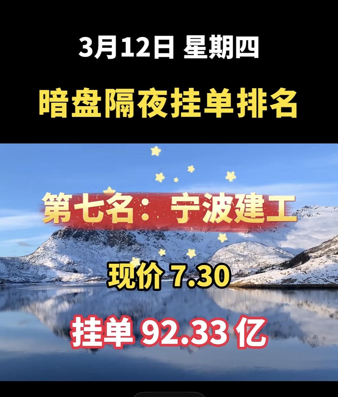 3月12日暗盘隔夜挂单排名前八名个股揭晓 现价7.30,挂单92.33亿,这数据相当惊人。前一天它收盘价7.30元,涨幅9.94%,成交额37.55亿,换手率达48.45%,近一半流通筹码都换了手。 对比其他企业,协鑫能科现价19.42,挂单42.88亿;洲际油气现价7.56,挂单53.98亿;协鑫集成现价5.96,挂单61.73亿。宁波建工挂单金额远超它们。它自年初4.87元低点震荡上行,这次放量涨停突破前期压力位。不过这是主力换血还是击鼓传花,就看后续走向了。