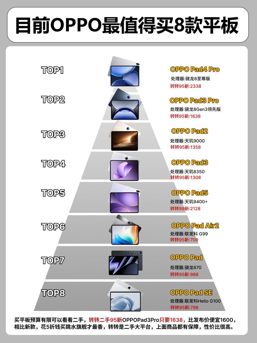 目前OPPO最值得买的8款平板。oppopad4prooppopad3prooppopad2oppopad5数码科技 平板平板推荐OPPOpadoppopadair2