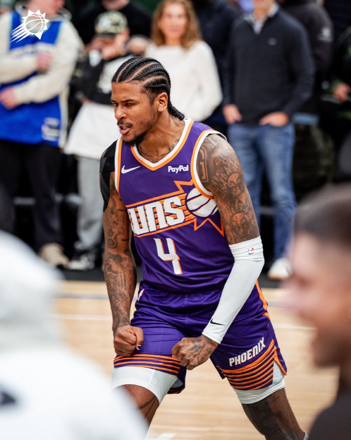 而现在的布克更像是一把重剑,重剑无锋,但出手即使杀招,不需要绚烂的刀法,任何一劈一斩都能杀人于无形,简洁又高效。布克从纯分位向双能卫转型是相当成功的,从一开始只会利用自身单打的假象进行一些直接助攻和辣眼睛的后仰跳传,到现在上场自带威慑的控场能力,出手越来越合理,视野越来越开阔,能在单打和传球间更果断地做出决策,布克已经完全成为了一支球队托底的基本盘。