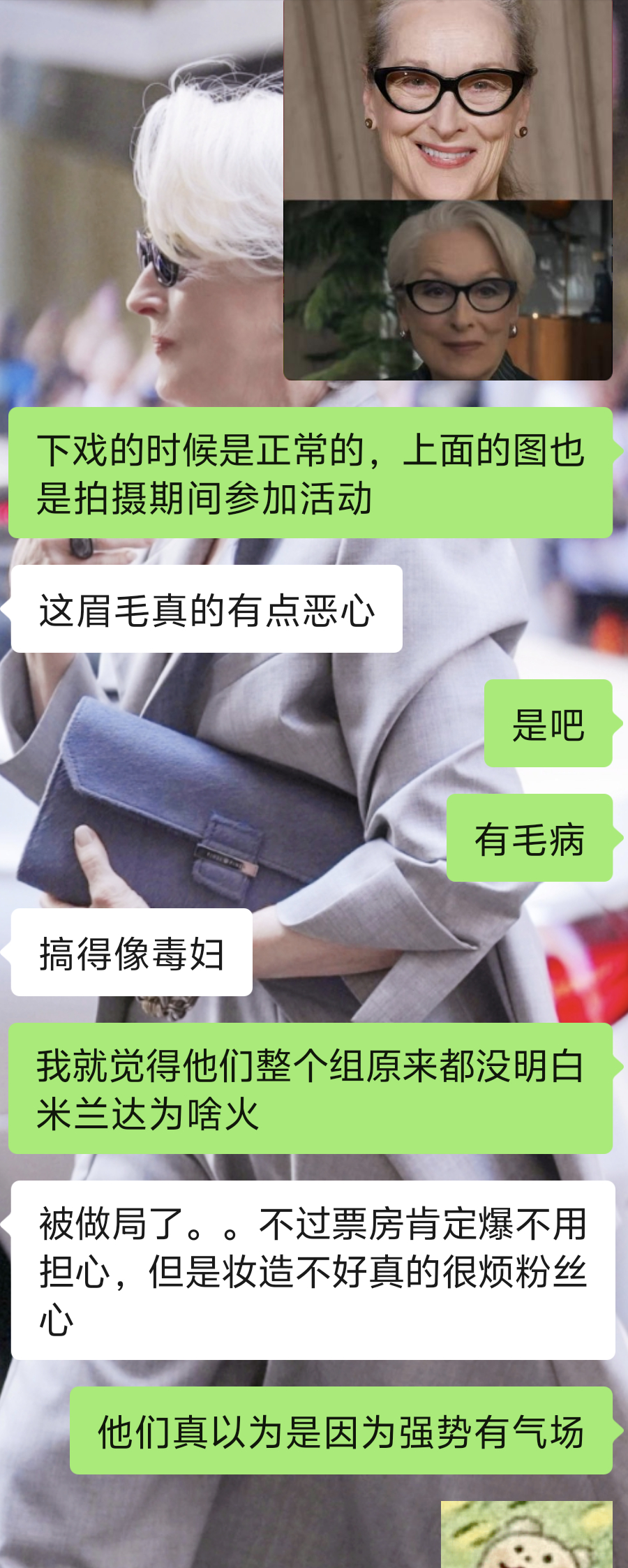 小蔚下午在影院看完普拉达2预告后,一直对着我们群几个洗脑,从下午到现在,正面侧面