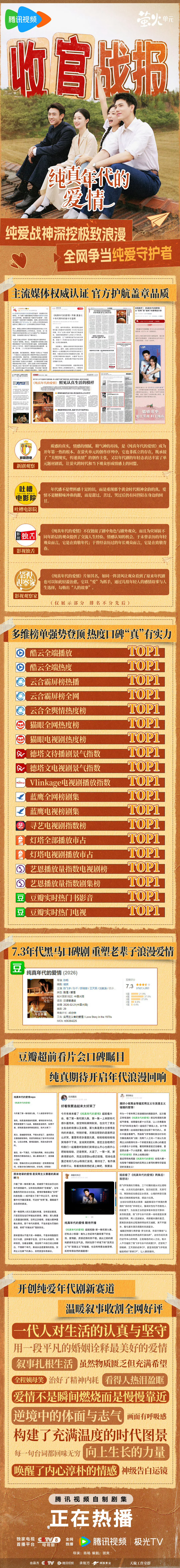 纯真年代的爱情收官战报 陈飞宇 孙千 郭晓婷 王天辰《纯真年代的爱情》收官战报来了,播出成绩好棒,这部剧值得反复观看啊