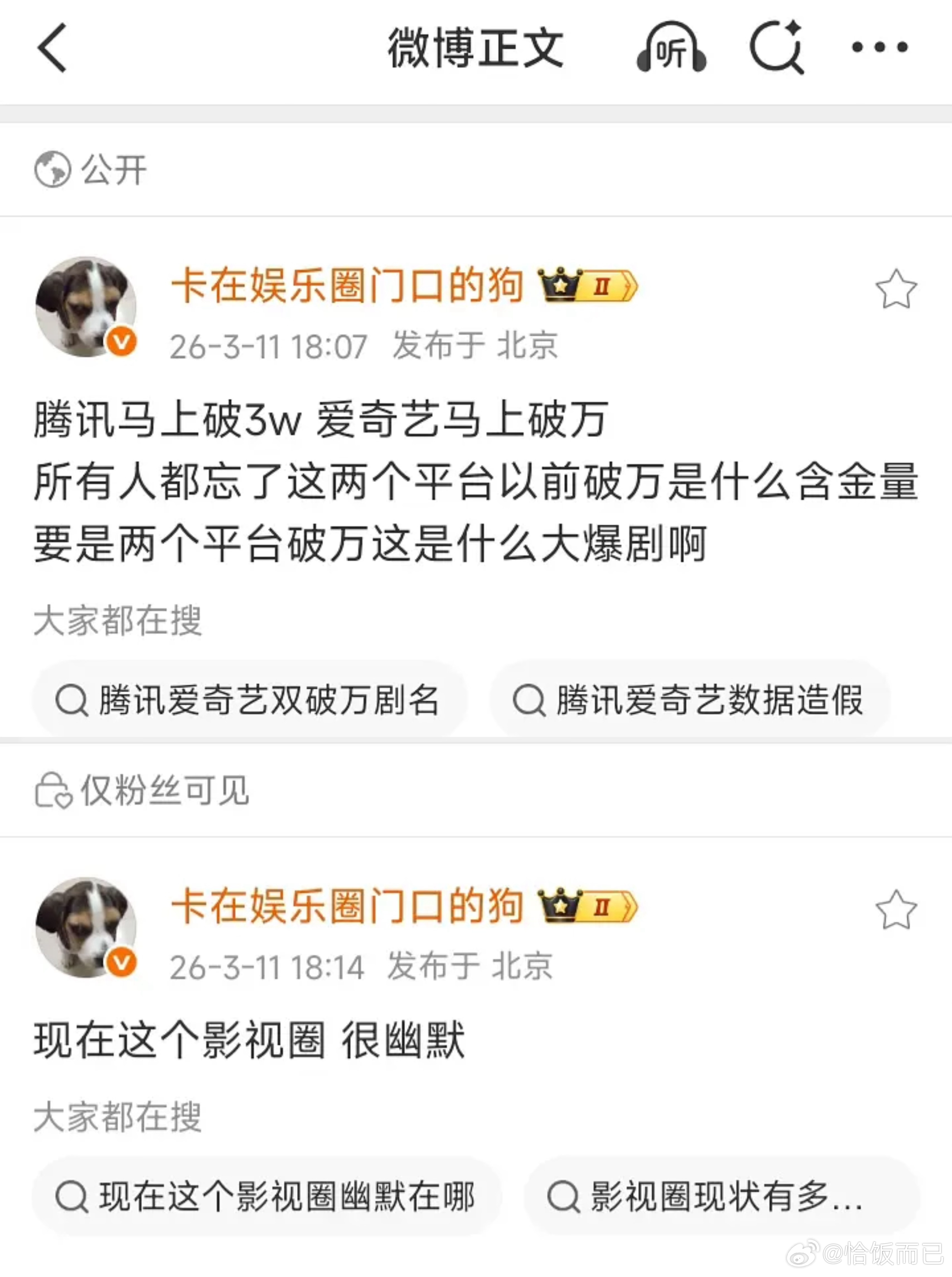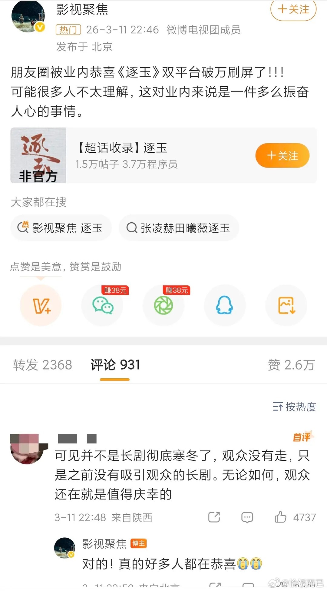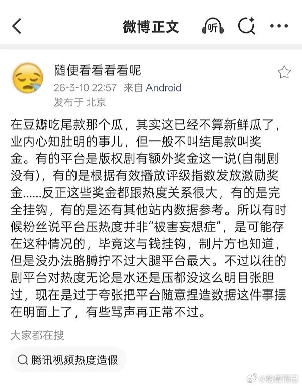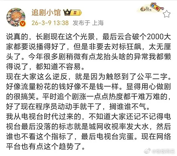 逐玉双平台热度破万业内发文 旺仔小锦鲤鱼 AI取代观众
