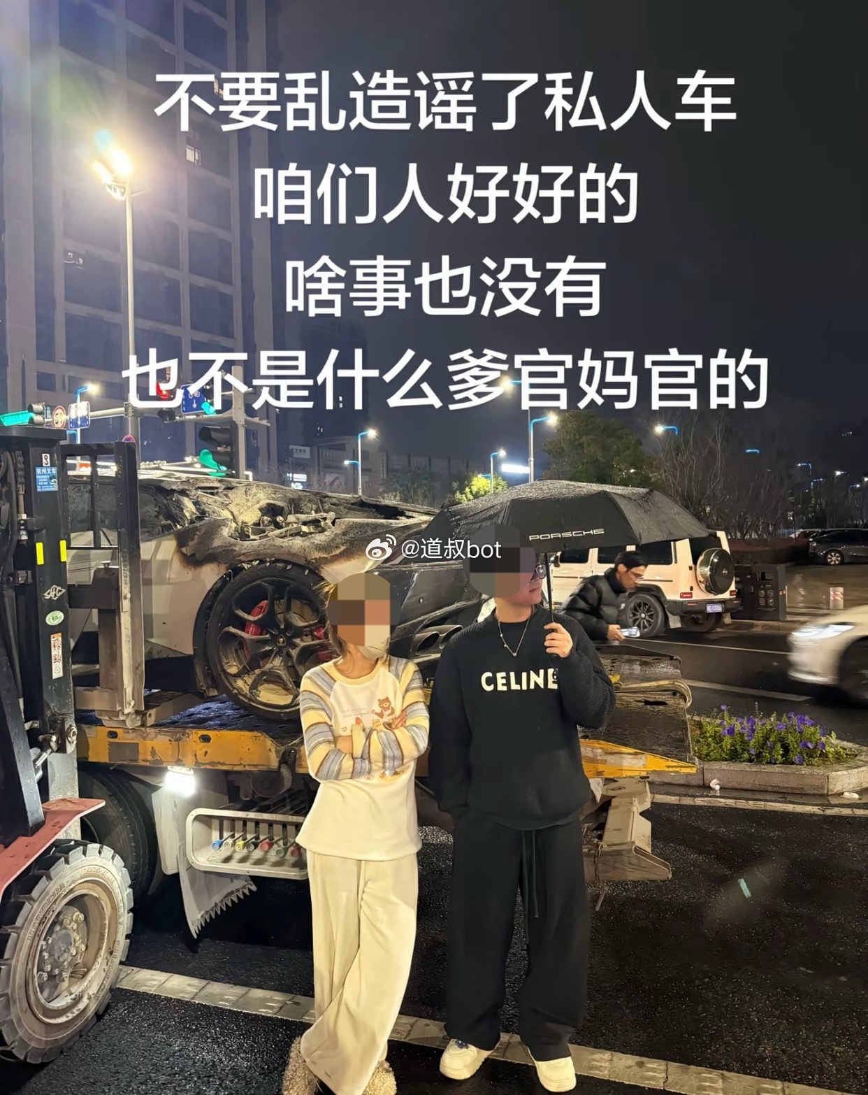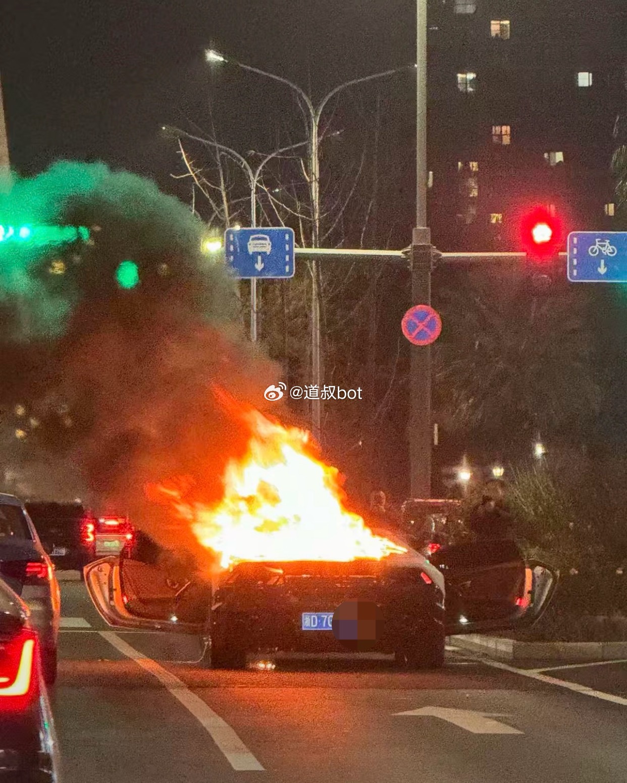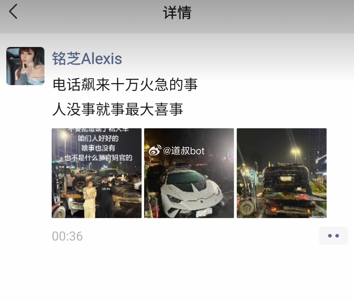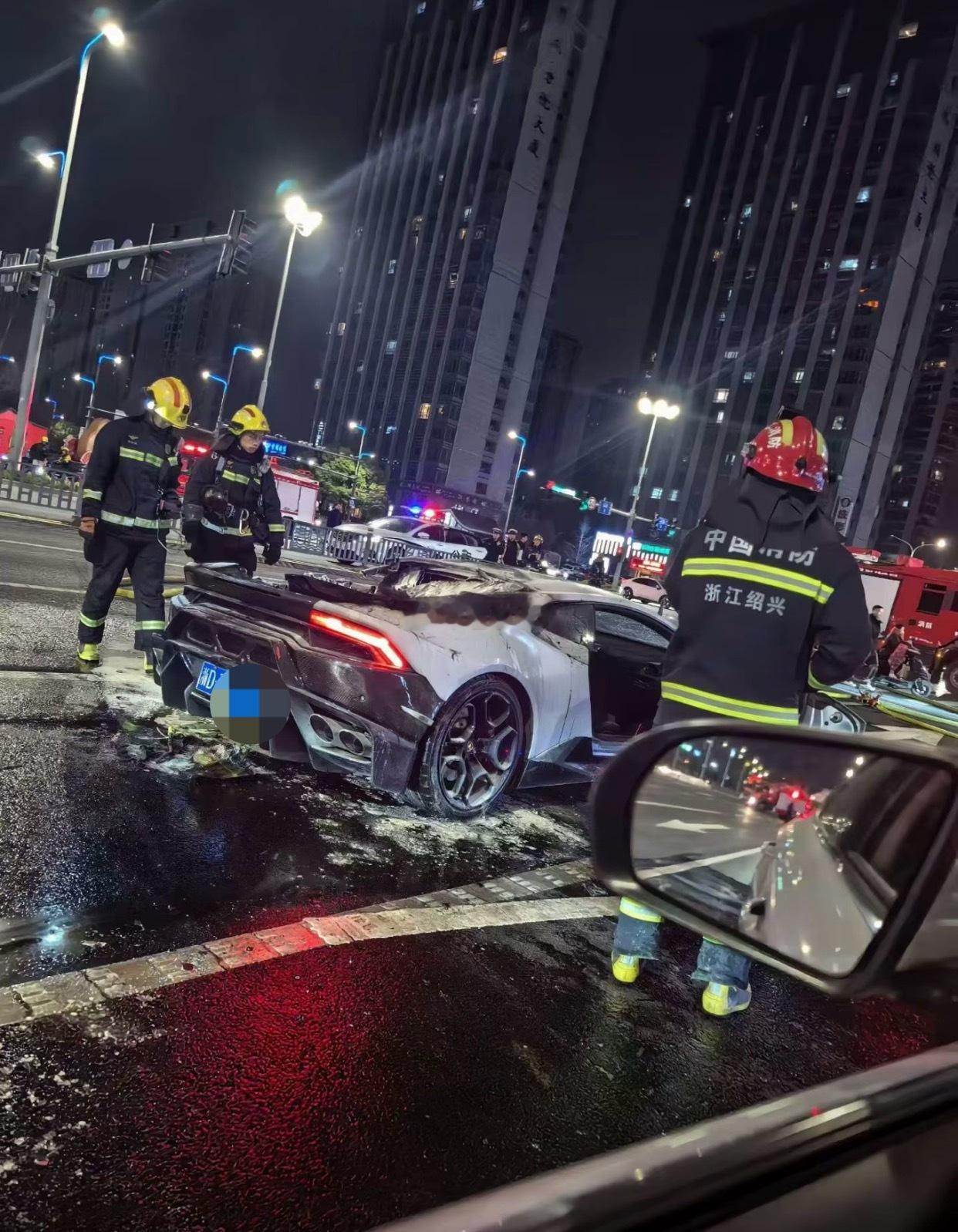 兰博基尼烧了,车主回应人没事。