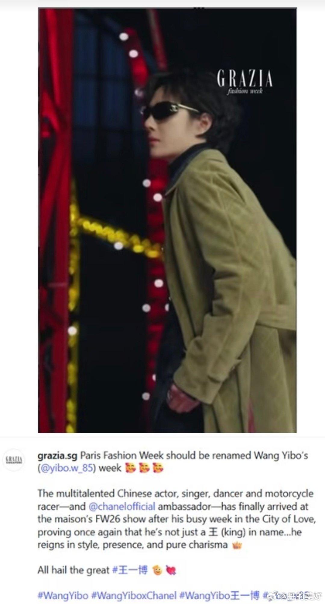 王一博的国际咖位如何?正如Lacoste 认领王一博的配文: A runshow is nothing without its guests, and what guests they were. 一场时装秀若无嘉宾,便毫无看点;而今晚的嘉宾星光熠熠。 通俗解读就是:时装秀好不好看,全看嘉宾;今天我的嘉宾最牛掰![小鼓掌] 巴黎时装周,香奈儿全平台首图认领王一博,Ig story发单人入场视频;罗意威全平台首位认领;Lacoste 全平台首图认领;力压韩娱欧美明星待遇。 Vogue France全平台单独报道王一博香奈儿大秀。 ELLE、Mint等时尚外媒盘点巴黎时装周前排全球名人,无一例外王一博*3,卷卷有爷名。
