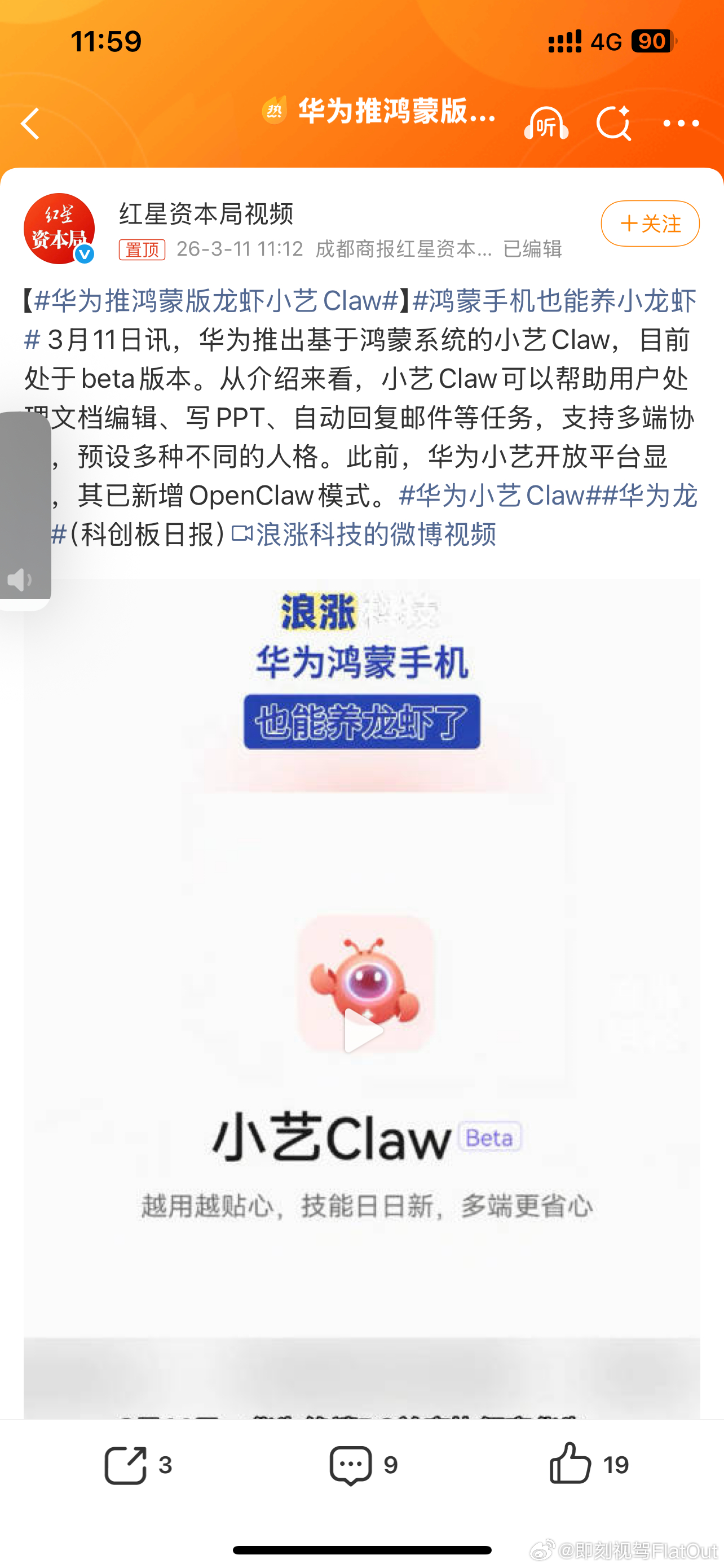 华为推鸿蒙版龙虾小艺Claw最近都在谈小龙虾现在手机也慢慢开始养虾了时代在不断进