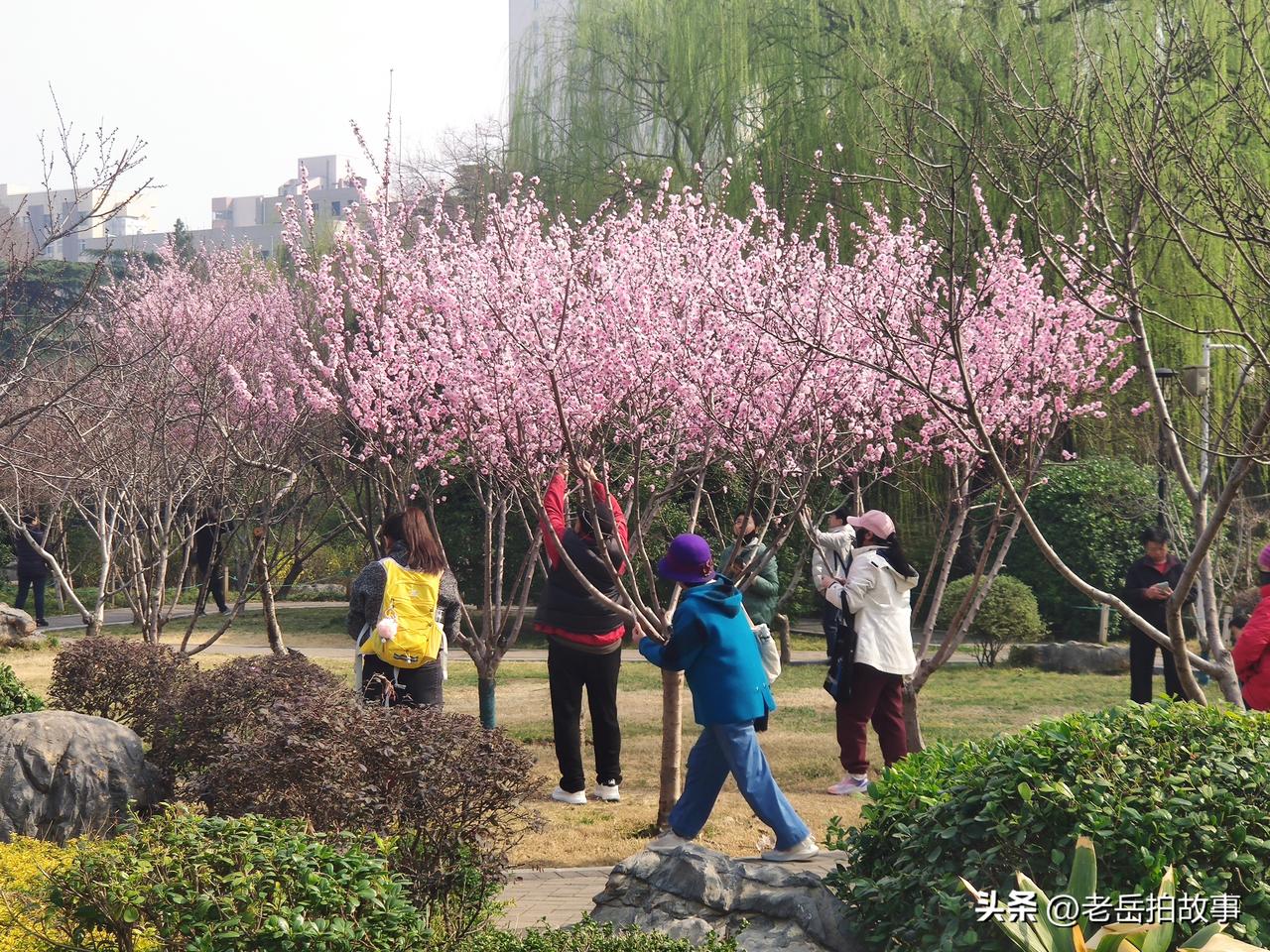 郑州市人民公园随手拍:春风柳绿花千树,蜂舞人追争谜景,垂柳一树平波上,绝似凝妆待月人!树底迷楼画里人,金钗沽酒醉余春。樱花树下送君时,一寸春心逐折枝。寿艳樱花秋艳枫,夏初嫩绿间深红……