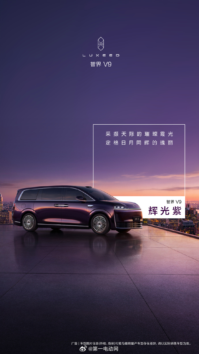 智界V9最新官宣的这四个颜色辉光紫、深海蓝、雪域白、鎏金黑加上此前透露的迎宾模式的话,感觉黑色、紫色应该挺有感觉的,蓝色、白色适合夏天