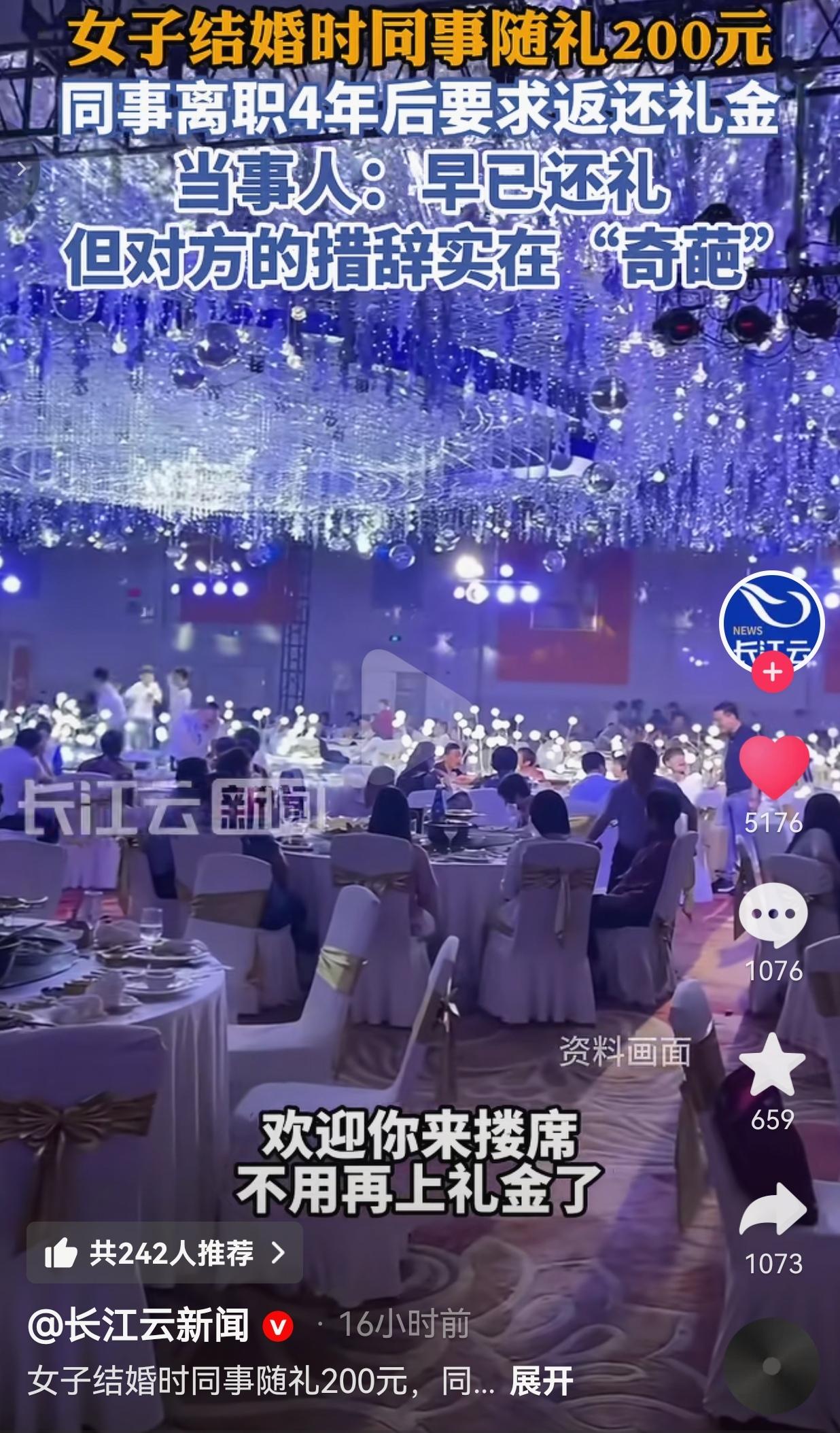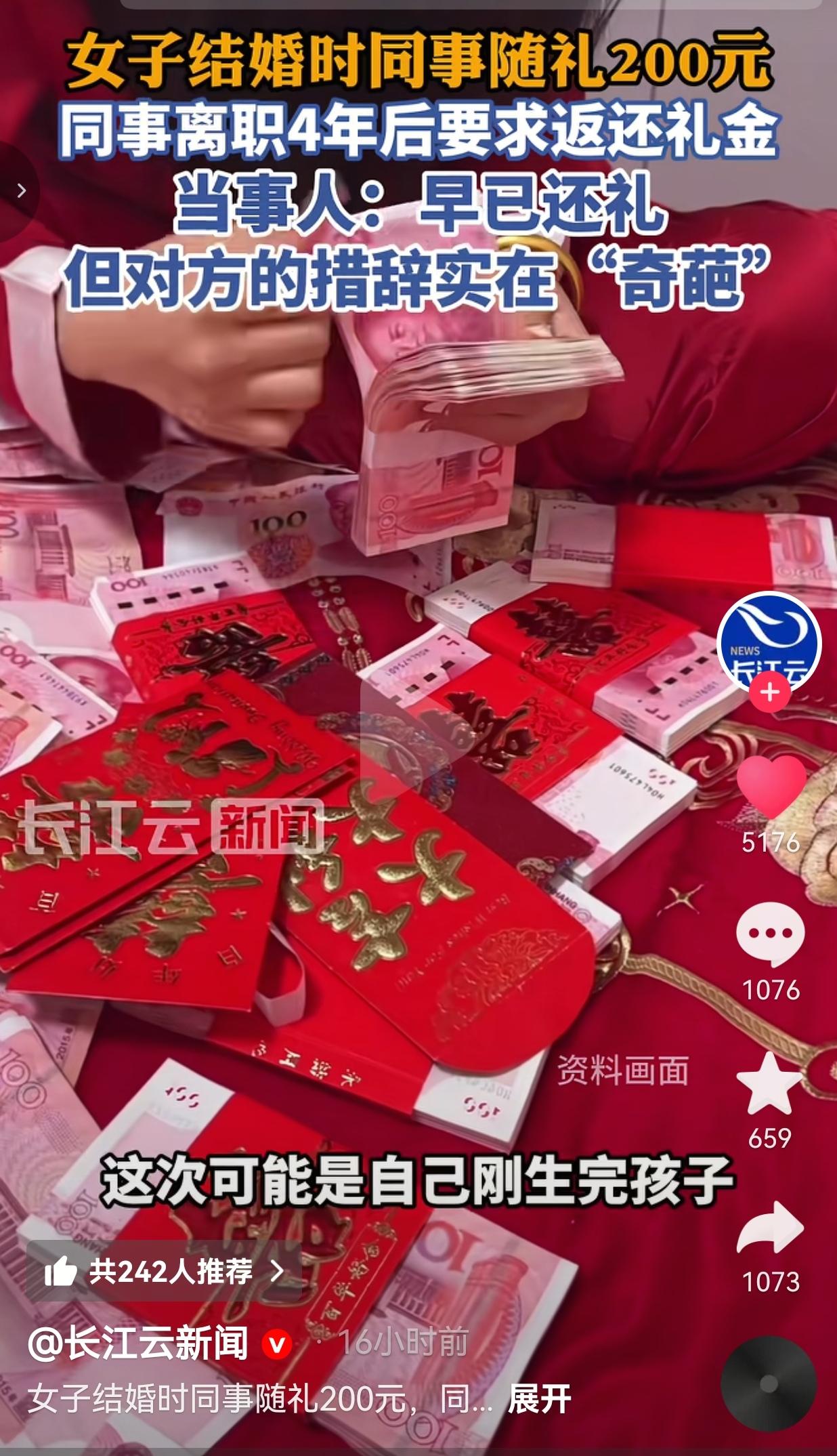 最近,河北赵女士遇到了一件哭笑不得的事情,这波操作简直比电视剧的剧情还离谱,评论区都炸锅了,网友们看完拳头都硬了又软了,纷纷喊“这也太奇葩了吧!” 事情是这样的,2021年9月,赵女士结婚,同部门的一个同事随了200块的礼金,结果不到一个月,这同事就拍拍屁股离职了,俩人从此断了联系,连个朋友圈点赞都没再有过,就像人间蒸发了一样。 本来这事儿就翻篇了,谁知道4年后的今天,前同事突然发来消息,还美其名曰提出“礼金回收”的请求,措辞那叫一个“清新脱俗”,连赵女士都直呼实在“奇葩”。 这位同事是这样说的:“最近可好呀,时间过得太快了,之前你结婚,我和单位的同事一起随了礼钱,这中间我们也一直没再联系,近几年我也没有再宴请的打算,现在赚钱不易,所以想着是否可以提前要回。要是我以后生二胎的话,也欢迎你来搂席😂,到时候就不用你上礼金了。祝生活美满!” 赵女士当时就懵了,赶紧翻出当年的聊天记录,并回复道:“哈喽,刚才忙着了。理解你的意思。虽然你离职后咱们联系不多,记得当时朋友圈看到你生孩子报喜,也不知道你啥时候宴请,就立刻给你转了。😂要不还得总惦记着,特别不愿意欠礼金。印象中是这样,我刚才查了一下,没记错。” 合着人家早就把人情还得明明白白!2022年7月,赵女士在朋友圈刷到前同事生娃报喜,怕日后忘了这份人情,怕一直欠着心里不踏实,当场就把200块礼金转了回去,连对方的满月酒、百日宴都没等,更没想着要去蹭一顿饭。这操作让网友们狂点赞:“赵女士太敞亮了!这才是真的懂人情世故!” 现在倒好,前同事可能刚生完二胎手头紧,居然翻出4年前的旧账来要钱,还说得这么冠冕堂皇,把“人情”当成了可以随时支取的“活期存款”,甚至画了个“生二胎不用随礼”的饼,这算盘珠子都崩我脸上了! 网友们气得直骂:“200块钱都要算计,这是穷疯了吧?脸都不要了!” 还有的网友说:“合着你随礼是放高利贷呢?还带提前赎回的?” 说实话,我特别能理解赵女士的心情,跟网友们一样膈应得慌。随礼这事儿,本来就是人情往来,你敬我一尺我敬你一丈,图的是个热闹和心意,不是放高利贷。 200块钱不多,但这份“算计”真的让人膈应。人家早就把钱还你了,你转头就忘得一干二净,现在缺钱了就想起这茬,还大言不惭说“提前要回”,这不是抠门,是自私,是把别人的体面当成了自己占便宜的底气。 更讽刺的是,前同事还说“以后生二胎欢迎你来搂席”,可谁稀罕啊?这种把钱算得比命还精的关系,别说吃席了,连微信都不想再聊一句,生怕多说一句都要被算上“人情利息”。 同时,通过这事儿也给我们提了个醒:随礼别当“投资”:人情不是买卖,别想着今天给出去的钱,明天必须连本带利要回来,更别把随礼当成“长期定投”,等着对方家有喜事时“回本”。 还钱要趁早:像赵女士这样,看到对方生娃就主动把礼金还了,不拖不欠,心里敞亮,也避免了日后这种“陈年旧账”被翻出来的尴尬。网友们都夸:“赵女士这波操作太解气了,不欠人情,腰杆都硬!” 远离精于算计的人:有些人总想着占小便宜,把别人的客气当福气,把人情当成可以随时变现的工具,这种关系趁早断了,免得闹心又伤神。 说到底,随礼随的是情分,不是债。如果连这点情分都要算得清清楚楚,连4年前的200块都要掰扯半天,那还不如一开始就别来往,省得最后连这点体面都守不住。 大家觉得呢?欢迎大家评论区讨论留言。