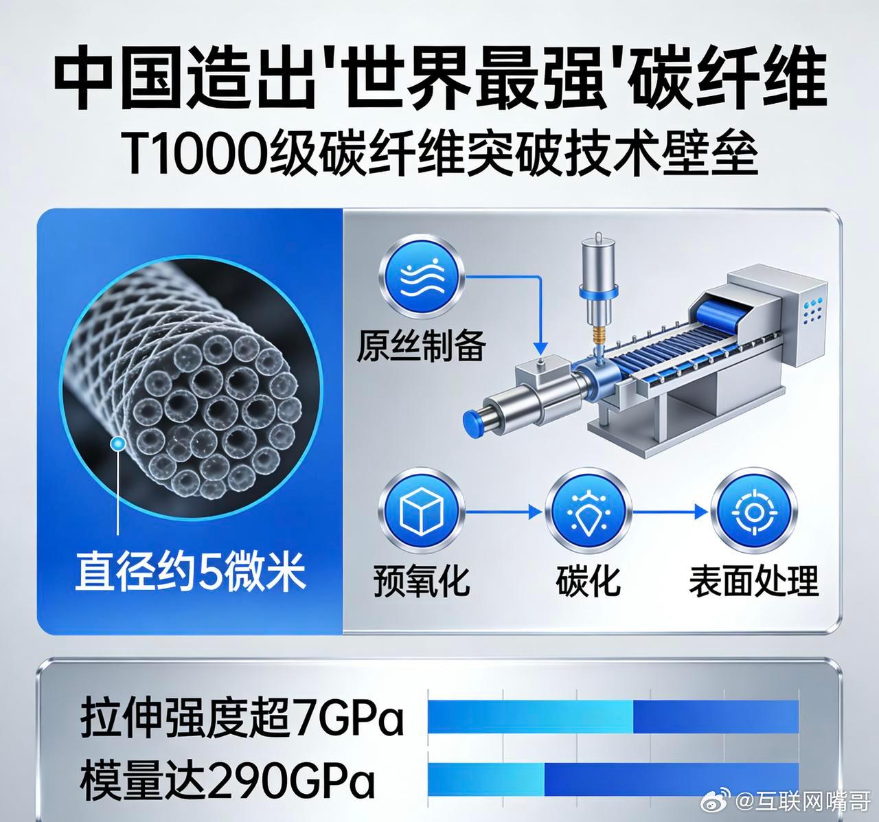 是的,为他们点赞!T1000级碳纤维的量产,打破了西方数十年垄断。这背后是科研人员在前驱体聚合、干喷湿纺等核心工艺上的长期攻坚,实现了关键设备100%国产化,让中国高端制造有了坚实支撑。